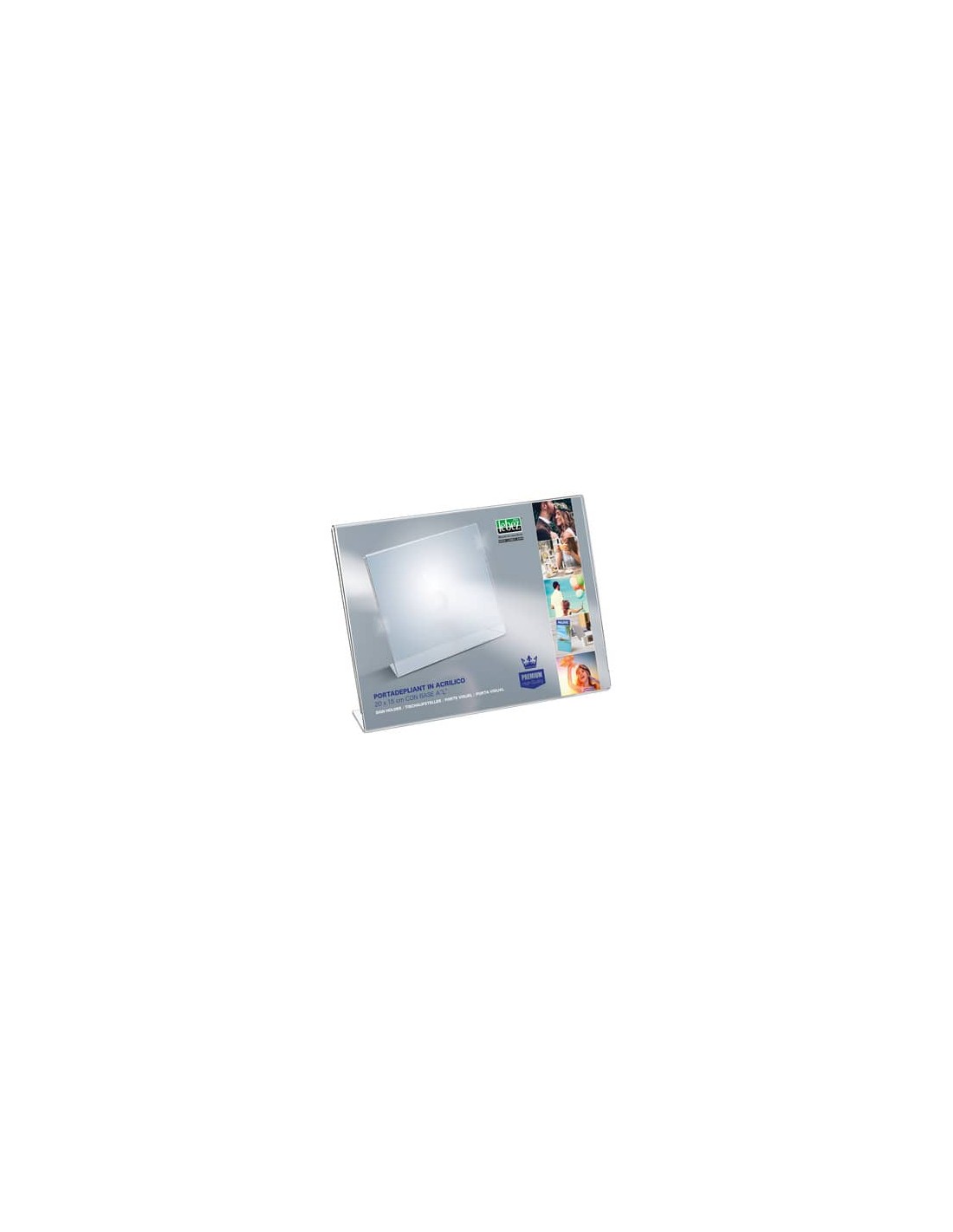 Portadepliant in acrilico con base a L Lebez formato 20x15 cm - orizzontale - trasparente - 7038