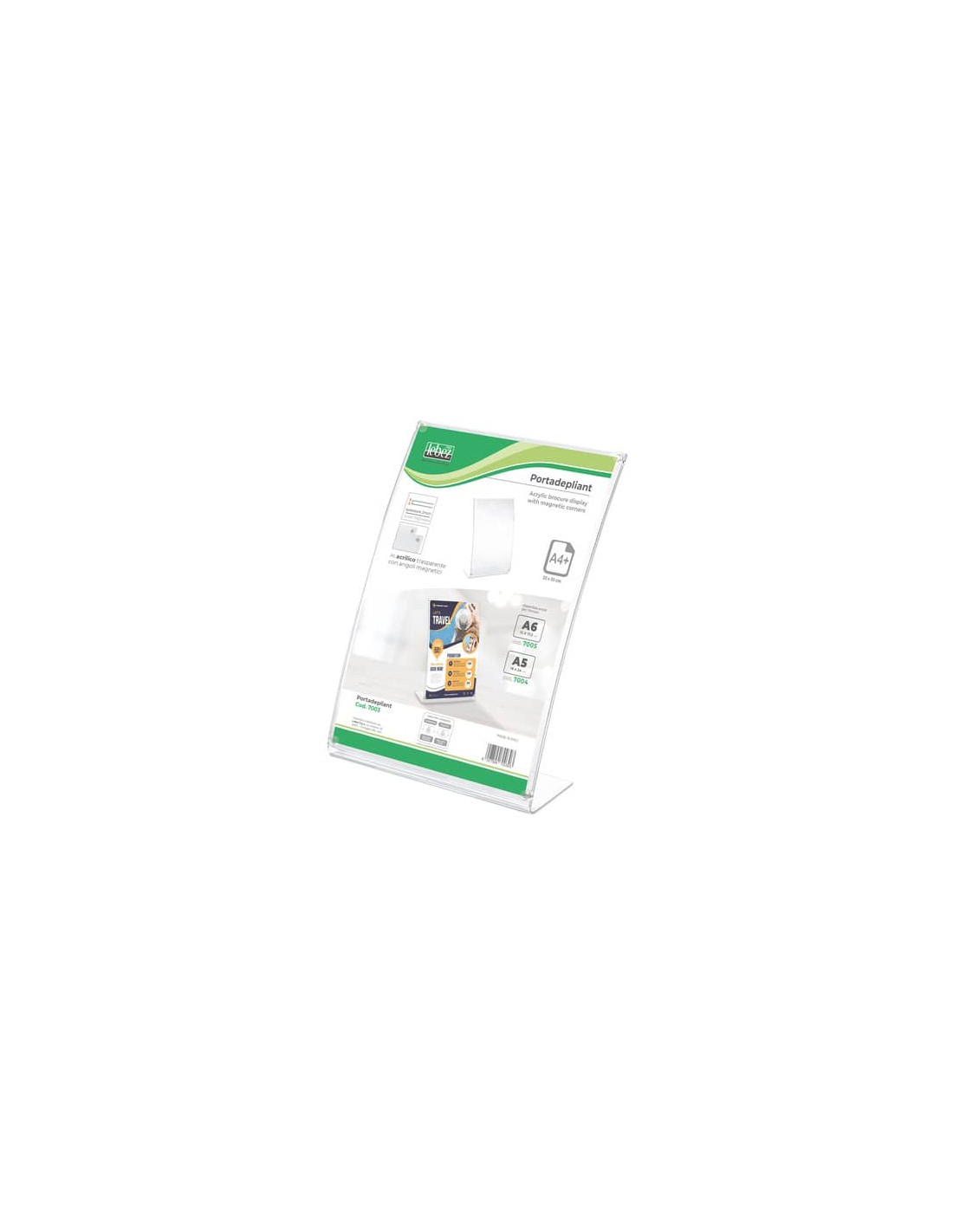 Portadepliant in acrilico con base a L - angoli magnetici Lebez A4 - verticale - trasparente - 7003
