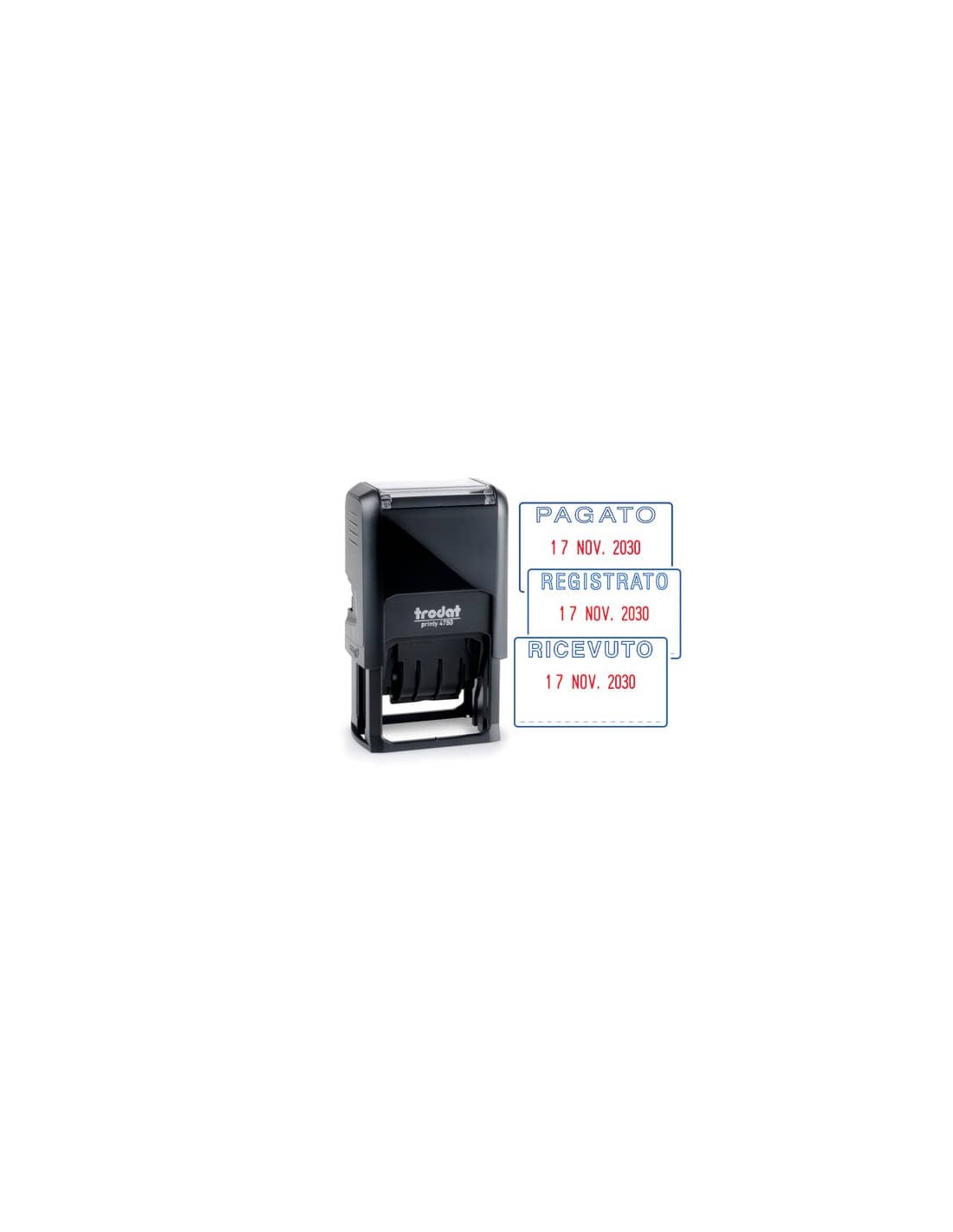 Datario con testo PAGATO TRODAT PRINTY ECO 4750/L2 in plastica 41x24 mm blu-rosso - 141062