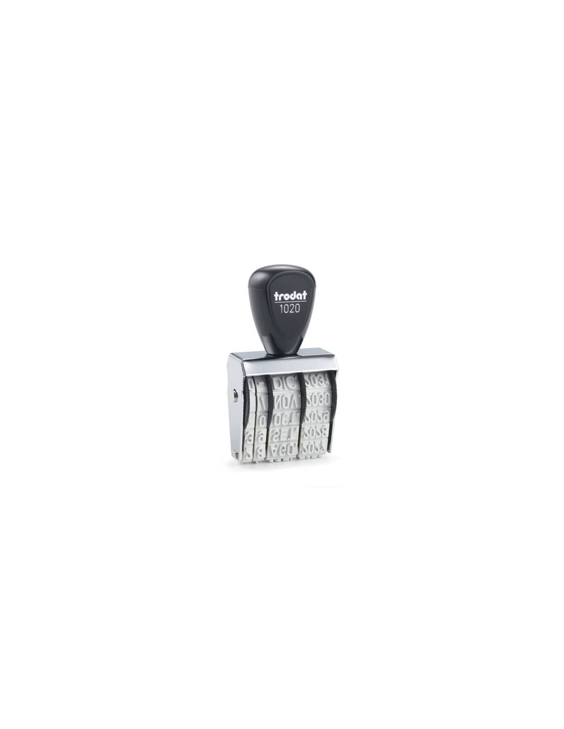 Datario in gomma altezza caratteri 5 mm con struttura in metallo ed impugnatura in plastica.