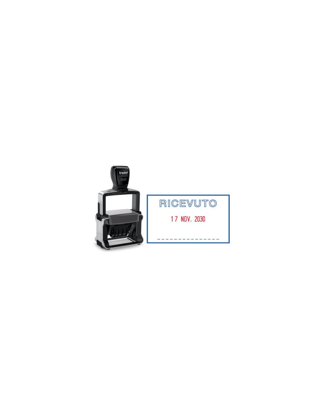 Timbro Datario autoinchiostrante per ufficio con testi RICEVUTO. Solida struttura in acciaio inossidabile. Impugnatura ergonomica per uso professionale. Massima qualità delle impronte. Inchiostro indelebile in conformità alla norma DIN ISO 14145-2. Modello cartuccia di ricambio Trodat 6/56/2. Cambio cartuccia sempre facile e pulito grazie a speciali zone di impugnatura brevettate. Regolazione pulita della data grazie alla copertura delle bande. Validità datario 12 anni. Semplice posizionamento dell'impronta. Prodotto eco sostenibile.