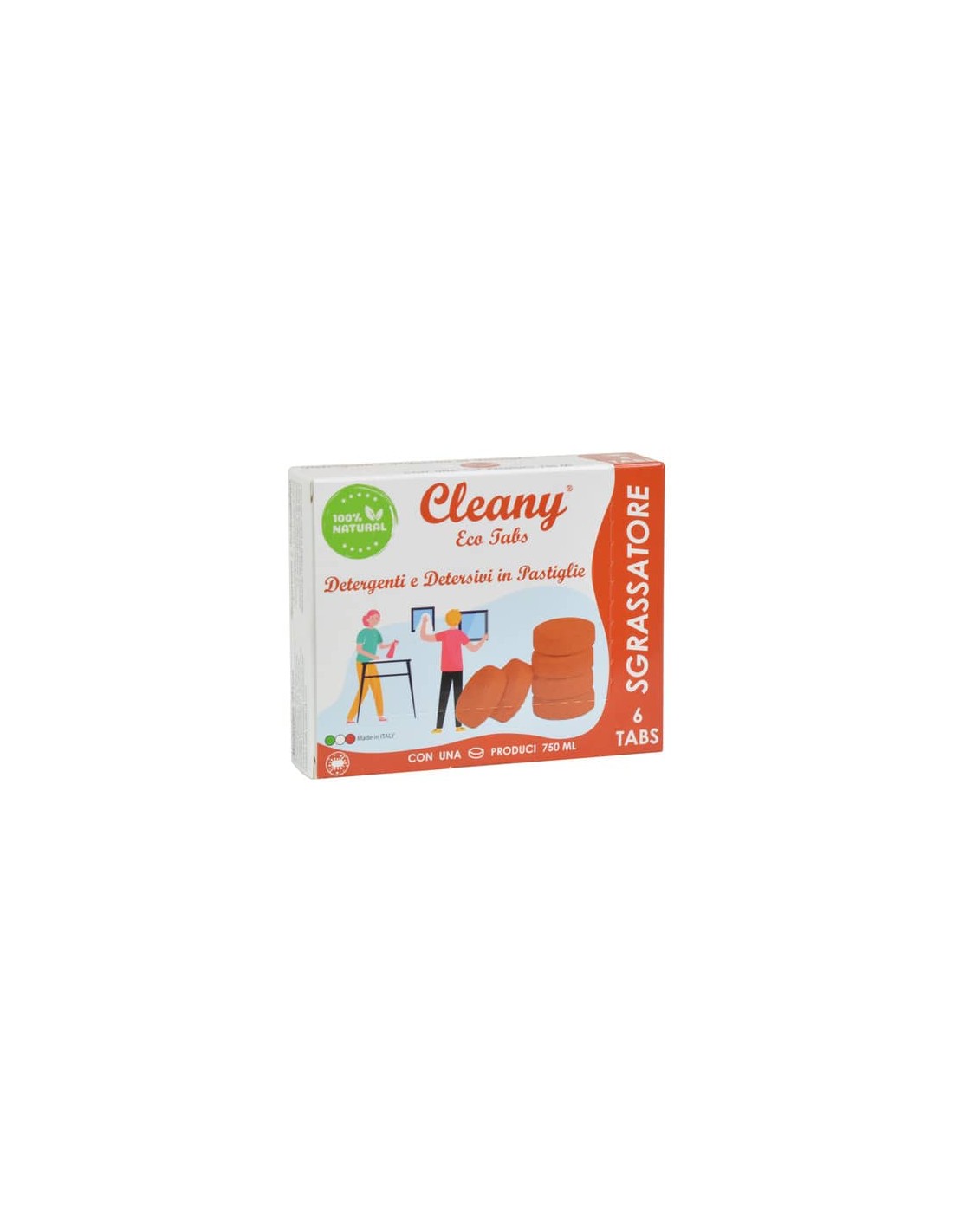 Sgrassatore universale igienizzante ad azione batteriostatica pesca. Cleany Eco Tabs Detergenti e Detersivi Naturali ed Ecologici in Pastiglie che eliminano Batteri, Muffe, Funghi ed Alghe.Tutta la gamma Eco Tabs annulla qualsiasi emissione di sostanze tossiche contenute nei normali detergenti, sgrassatori, detersivi e saponi, salvaguardando così la salute del nostro pianeta. Le Eco Tabs idrosolubili permettono all’utilizzatore di ottimizzare gli spazi, diminuire i costi e contribuire ad una causa molto importante (quella ambientale), senza rinunciare ai risultati che ognuno si aspetta da prodotti per la pulizia. Una pastiglia equivale a 750ml di prodotto.