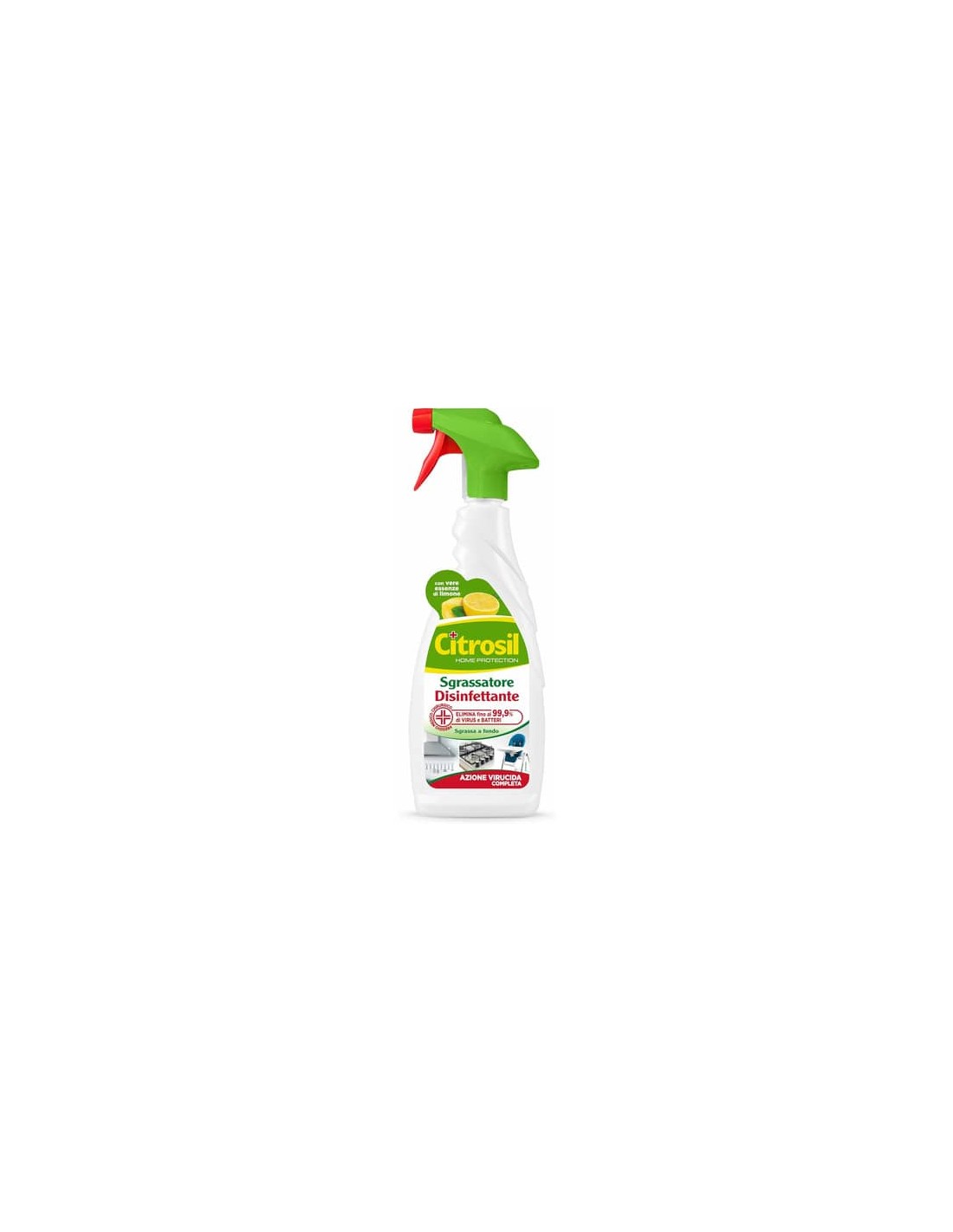 Sgrassatore disinfettante ad azione virucida completa. Formato: 650 ml. Presidio medico chirurgico. Elimina fino al 99,9% di virus e batteri. Sgrassa a fondo. Con vera essenza di limone.