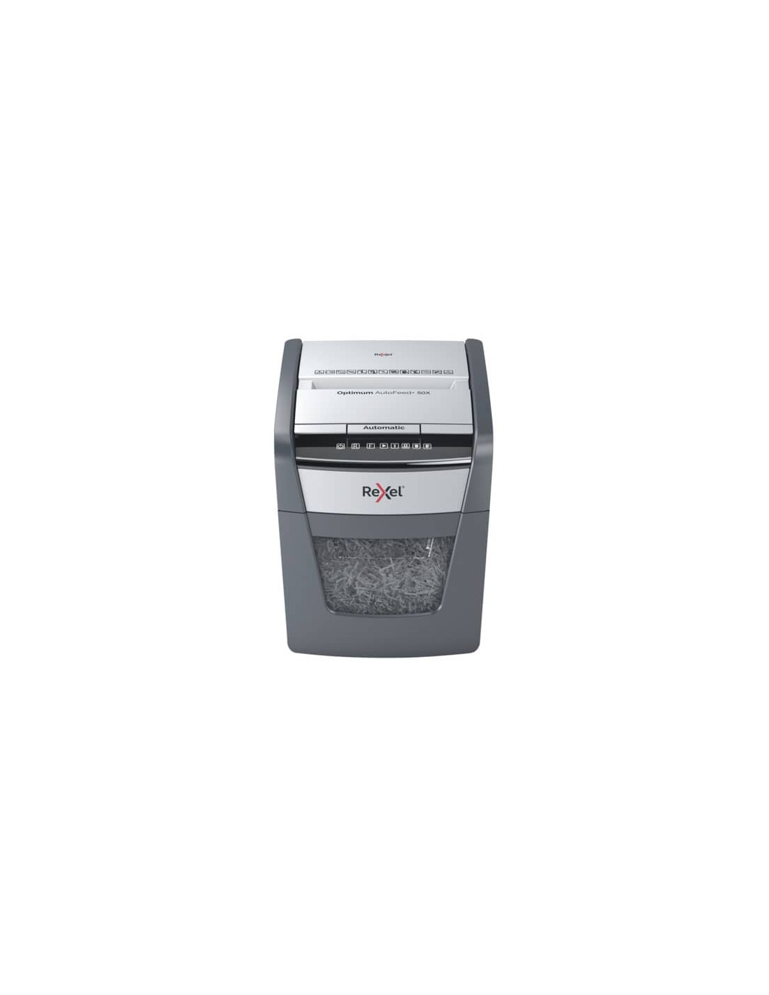 Il distruggidocumenti Optimum AutoFeed+ 50X con taglio a frammenti (4x28mm) distrugge automaticamente fino a 50 fogli A4 (80 gr/mq) alla volta e un massimo di 6 fogli con alimentazione manuale, con un livello di sicurezza P-4. Distruggidocumenti automatico adatto sia per uso domestico che in ufficio, grazie al suo cestino compatto estraibile da 20 litri. Tecnologia anti-inceppamento, distrugge carte di credito, punti e graffette. Ciclo di lavoro continuo per 10 minuti con raffreddamento a ventola. La modalità di risparmio energetico si attiva dopo 3 minuti di inattività. Pannello di controllo touch, livello di rumorosità 55 dBA ultra-silenzioso. Dotato di sensore a infrarossi che indica quando il cestino è pieno. Garanzia di 2 anni per il distruggidocumenti e per le lame. Dimensioni LxPxH 36,3x43x40,5 cm.