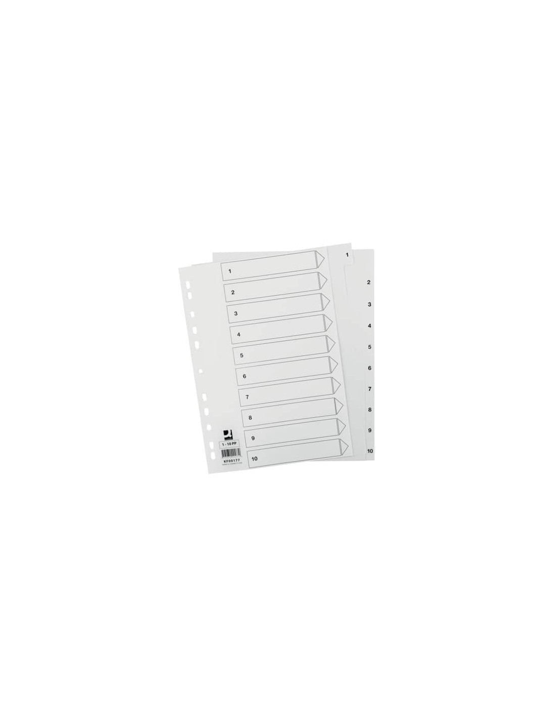 Divisori numerici 1-10 in ppl 120 my con indice scrivibile, tasti stampati, foratura universale. Formato 22,5 x 29,7 cm. Colore bianco.