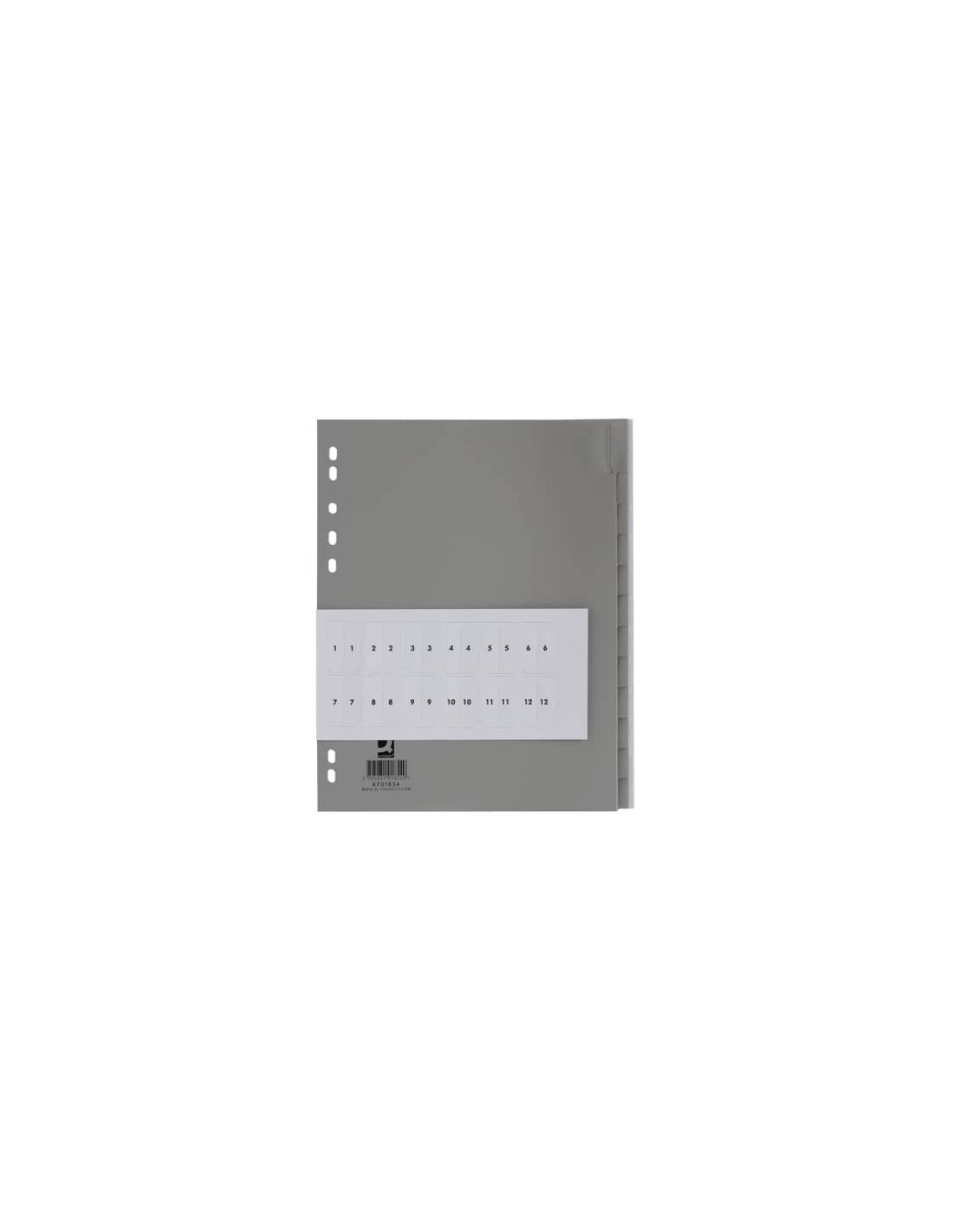 Divisori 12 pagine in ppl 120 my. Tasti personalizzabili con il cartoncino fustellato in dotazione. Formato 24,5 x 29,7 cm. 4 fori, colore grigio.