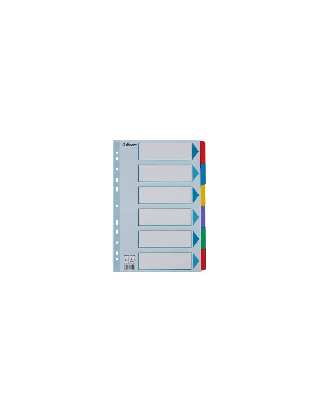 Pagina indice in cartoncino con un design a frecce blu e azzurre e rinforzi in mylar sul lato forato. Tasti colorati e rinforzati in mylar, tagliati e stampati su entrambi i lati per rintracciare facilmente i documenti precedenti senza dover tornare alla pagina indice. Il modello Maxi (24,5 x 29,7 cm) consente di suddividere i documenti inseriti in buste a perforazione universale.