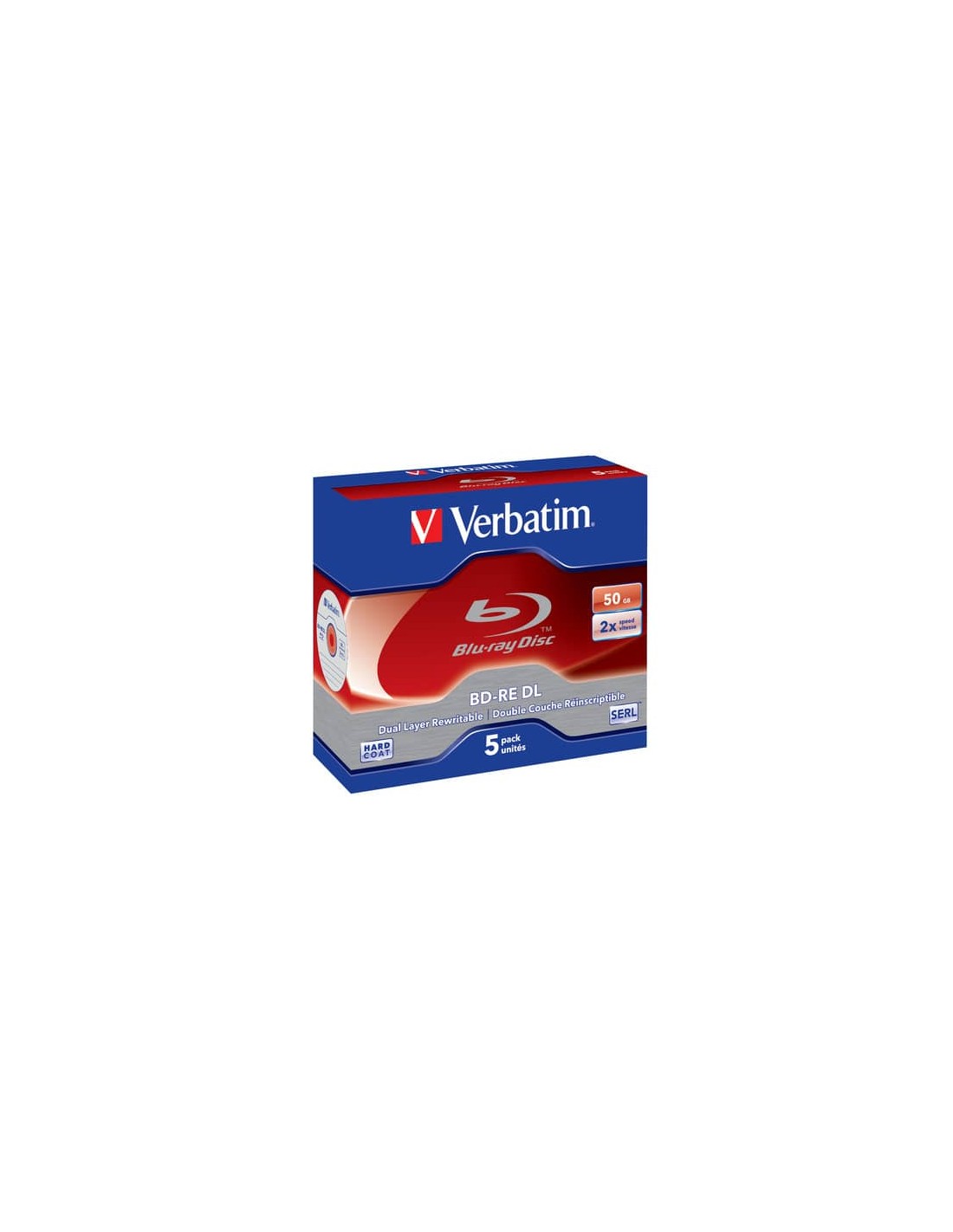 Blu-Ray BD-RE - Capacità: 50GB. Velocità: 2x . Confezione: 5 Pack Jewel Case. Questo disco è conforme alla specifica BD-RE Versione 2.1.