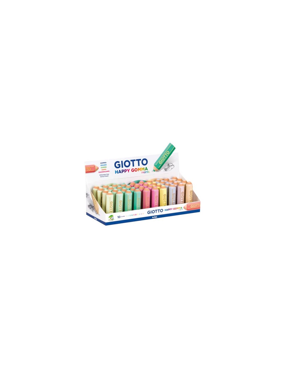 La coloratissima gomma a forma di matita Giotto. Comoda per l'astuccio, sicura, senza ftalati e senza PVC. Disponibile in 10 colori pastello. Espositore da banco da 40 pezzi assortiti.