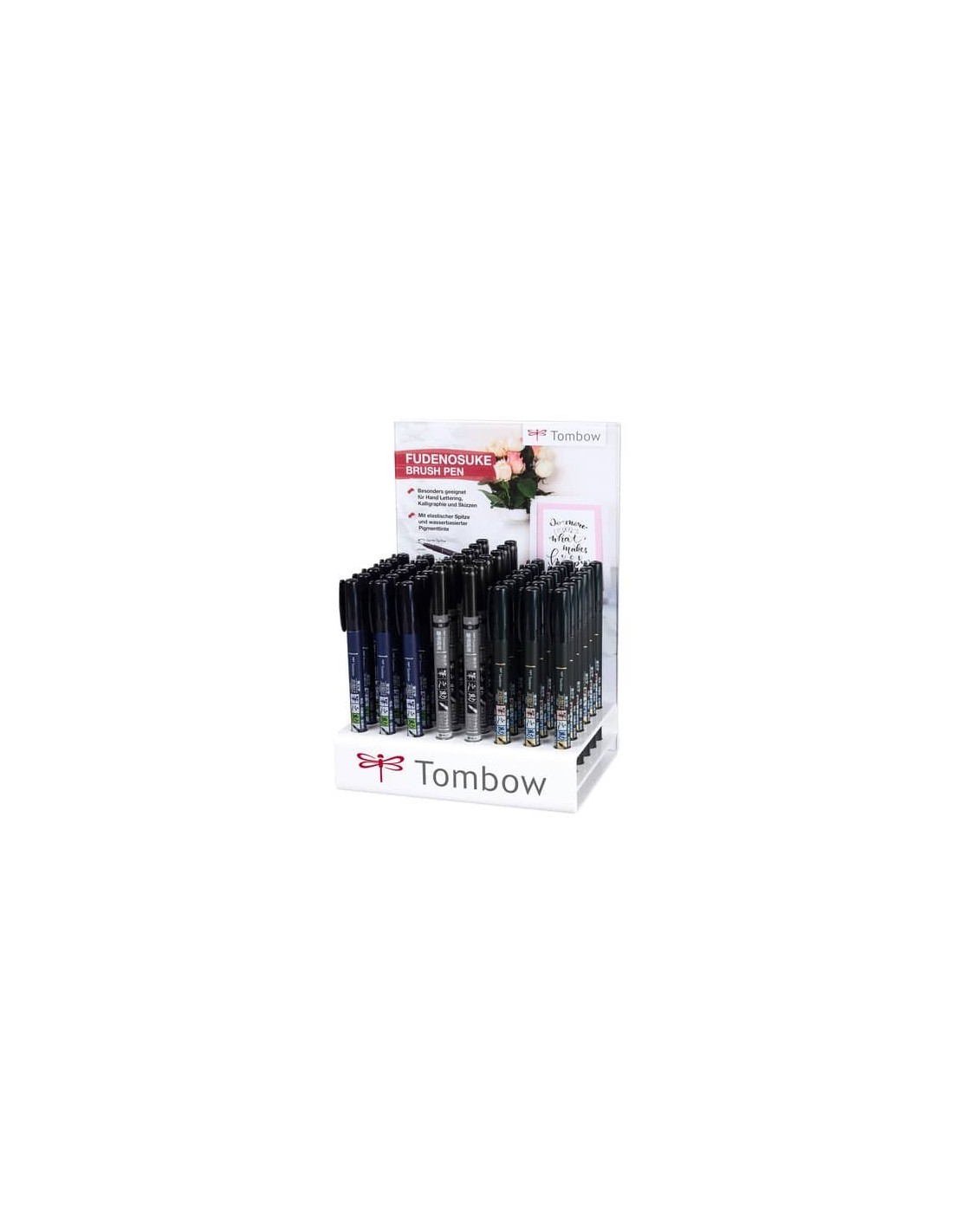 Espositore 48 marker calligrafici Tombow Fudenosuke Nero punta brush - assortiti nero - PWS-TBHS-48P-A
