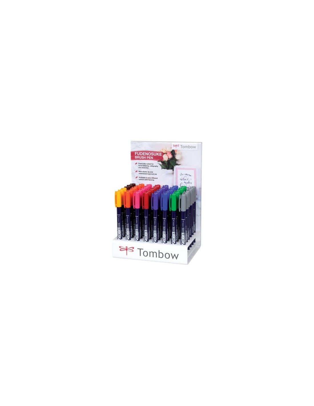 Espositore 48 marker calligrafico Tombow Fudenosuke Fluo punta brush - 6 colori assortiti fluo - PWS-BH-48P-2-A