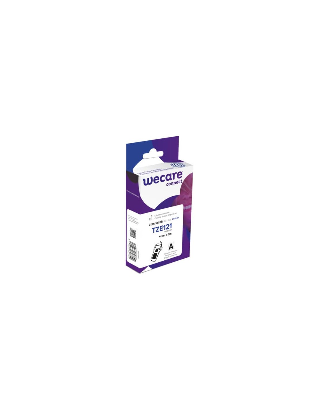 Nastro compatibile Brother 9 mm x 8 mt nero/trasparente. Compatibile con etichettatrice Brother P-Touch H105, D200, D200VP, E100VP, 18R, 500VP, 1090, 1290, 2030VP, 2470, 2430PC, 2700, 2730VP, 3600,7100VP, 7500VP, 7600VP, 3600, 9700PC, 9800PCN.