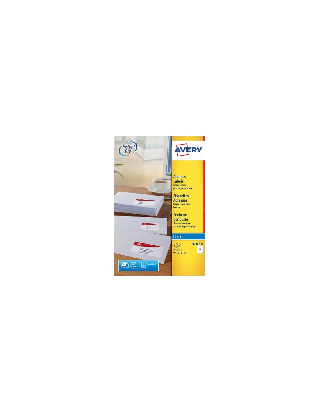 Etichette bianche in carta QuickDRY™ per buste e pacchi, adatte a stampanti Inkjet. Devi spedire tantissimi pacchi ed hai poco tempo? Scegli le etichette per indirizzi per buste e pacchi di Avery, sono realizzate con una speciale carta coprente che ti permette di coprire scritte ed etichette precedentemente applicate sui cartoni. Puoi stamparle velocemente e facilmente con il software gratuito di Avery. Inoltre grazie alla tecnologia Quick Peel™ l'etichettatura è ancora più veloce, basta tirare il foglio lungo la micro perforazione liberando così un lato dell'etichetta che si stacca più facilmente. Ideali non solo per etichettare pacchi ma anche per buste grandi, tubi e scatole. Utilissime per spedire piccoli pacchi, buste per corrispondenza, inviti, distribuire un mailing.