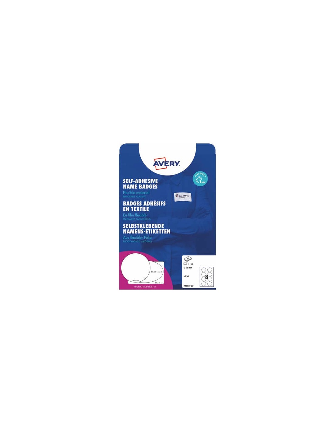 Aderiscono all’abito senza clip o spille. Ideali per identificare i partecipanti a meeting, eventi e seminari, in modo pratico e veloce. Stampabili o scrivibili a mano. Aderiscono perfettamente agli abiti, una volta rimossi non lasciano residui di colla.