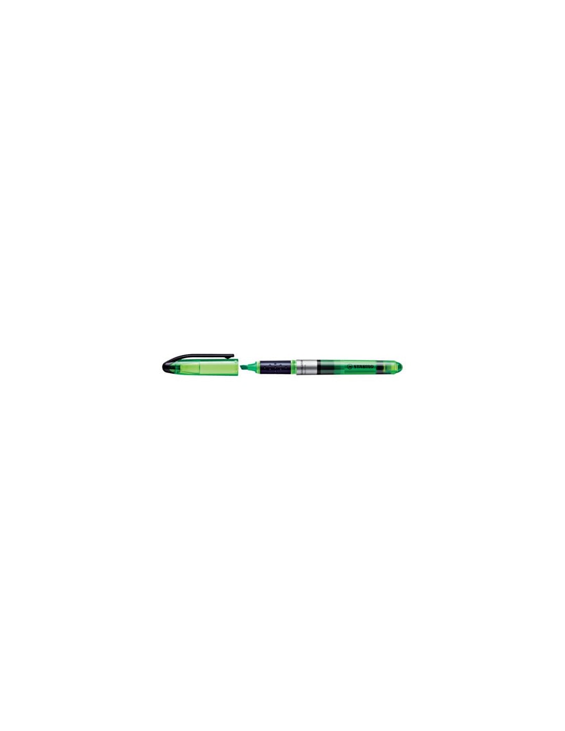 Evidenziatore tascabile con inchiostro liquido, impugnatura morbida e pratica clip. Livello d'inchiostro visibile, robusta punta a scalpello, 2 ampiezze di tratto (1+4 mm.). Resiste a lungo senza cappuccio. Colore: verde.