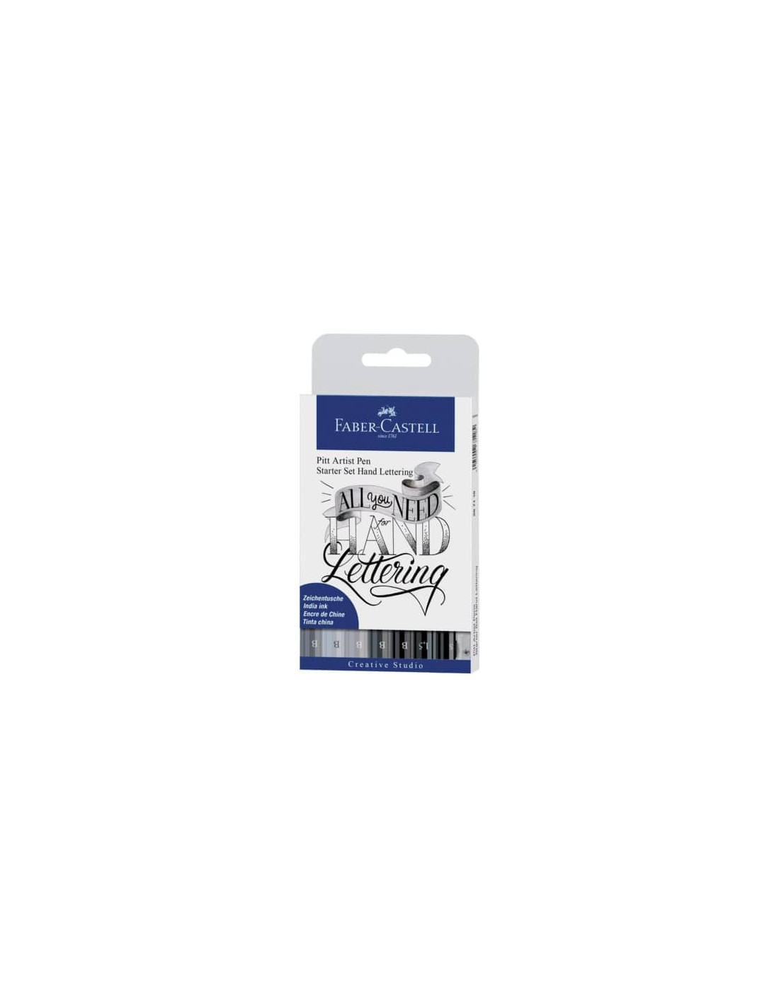 Tutto l’occorrente per l’hand lettering: una matita di grafite per gli schizzi preparatori, fineliner Pitt Artist Pen per i contorni, i dettagli sottili e le decorazioni e penne con punta a pennello Pitt Artist Pen per la scrittura, gli svolazzi e i tratti pieni. Set composto da 9 pezzi: 5 penne Pitt Artist Pen B = punta a pennello (colori 199 nero, 274 grigio caldo V, 272 grigio caldo III, 233 grigio freddo IV, 230 grigio freddo I), 1 fineliner S = 0,3 mm (colore 199 nero), 1 punta arrotondata 1,5 mm (colore 199 nero), 1 matita di grafite Castell 9000 con punta in gomma, 1 temperamatite in metallo. Ideale per lettering creativi e scritte artistiche. Include un depliant sull’hand lettering con istruzioni e consigli.