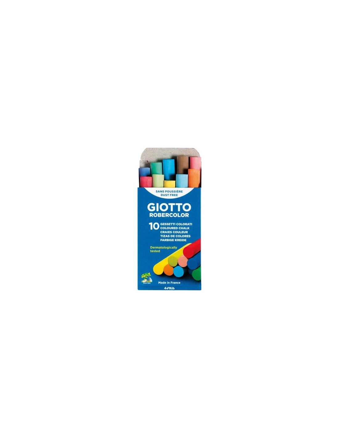 Gessetti tondi bianchi e colorati, non polverosi, per lavagne in ardesia. Diametro 10 mm, lunghezza 80 mm. A base di carbonato di calcio, sono prodotti con autentico gesso della regione francese “Champagne”. Dermatologicamente testati, scivolano sulla lavagna senza graffiare, lasciando un tratto nitido e pulito. I colori sono lavabili da mani e tessuti. Confezione da 10 colori assortiti.