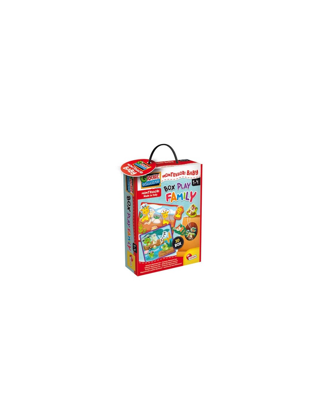 Esclusiva Montessori box. Un gioco a incastri con la speciale scatola tattile da cui pescare allegre famiglie di animali. Ogni famiglia va messa nella sua cartella. Contenuti e dettagli: 6 cartelle doppio fondo delle famiglie - 18 sagome autocorrettive - Scatola tattile - Istruzioni.