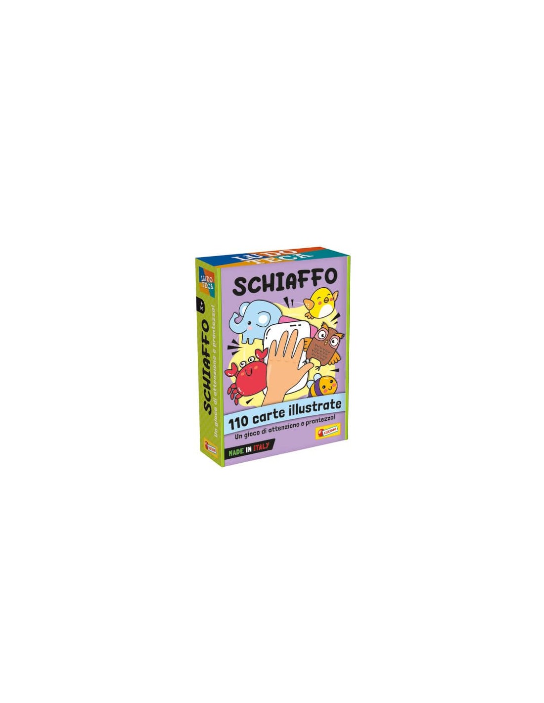 Un gioco di carte di attenzione e prontezza, semplice e divertente per bambini e non solo! L’obiettivo è trovare il soggetto (singolo) della carta rappresentato in una delle carte (con soggetti multipli) che si hanno in mano. Chi per primo trova nelle carte che ha in mano, una carta con raffigurato l’animale della carta appena scoperta, dà uno schiaffo al mazzo sul banco di gioco. E tu, sarai il più veloce a dare uno schiaffo alle carte?