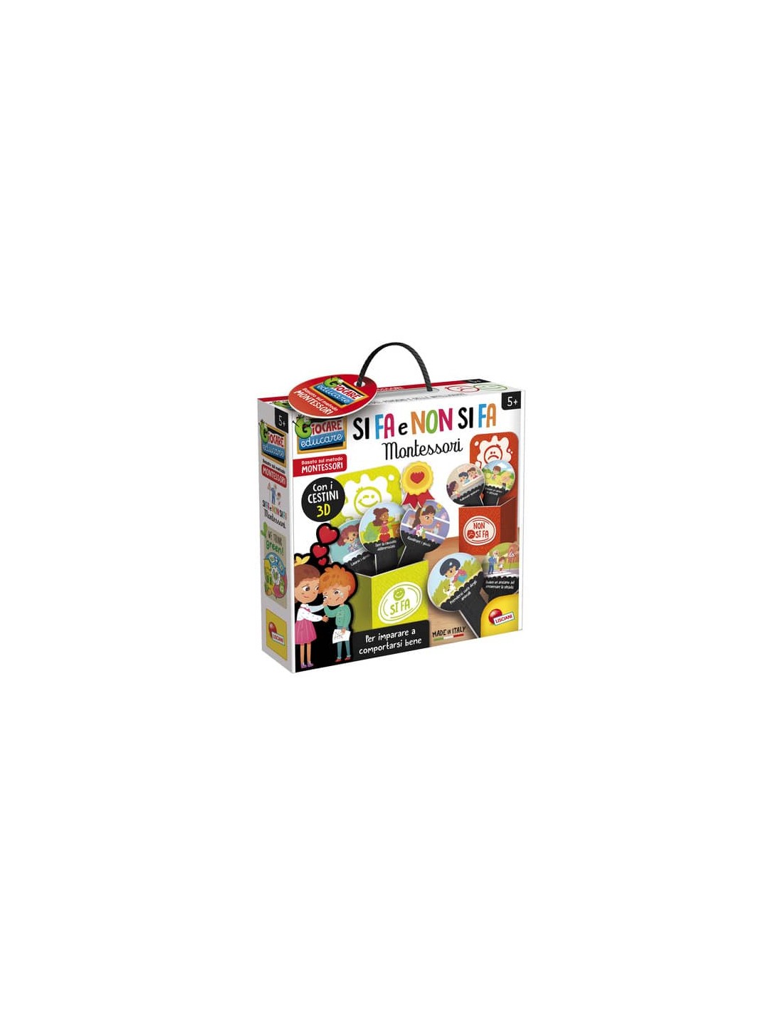 Un gioco originale per insegnare ai bambini cosa si fa e cosa non si fa. Dotato di cestini tridimensionali per classificare le azioni.