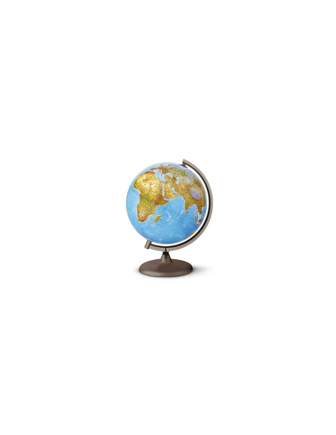 Il globo é dotato di luce ed evidenzia la parte fisica quando è spentio e quella politica se acceso. Base a doppio cono in resina blue, meridiano trasparente. Altezza 42 cm, diametro 25 cm, peso 745 grammi.