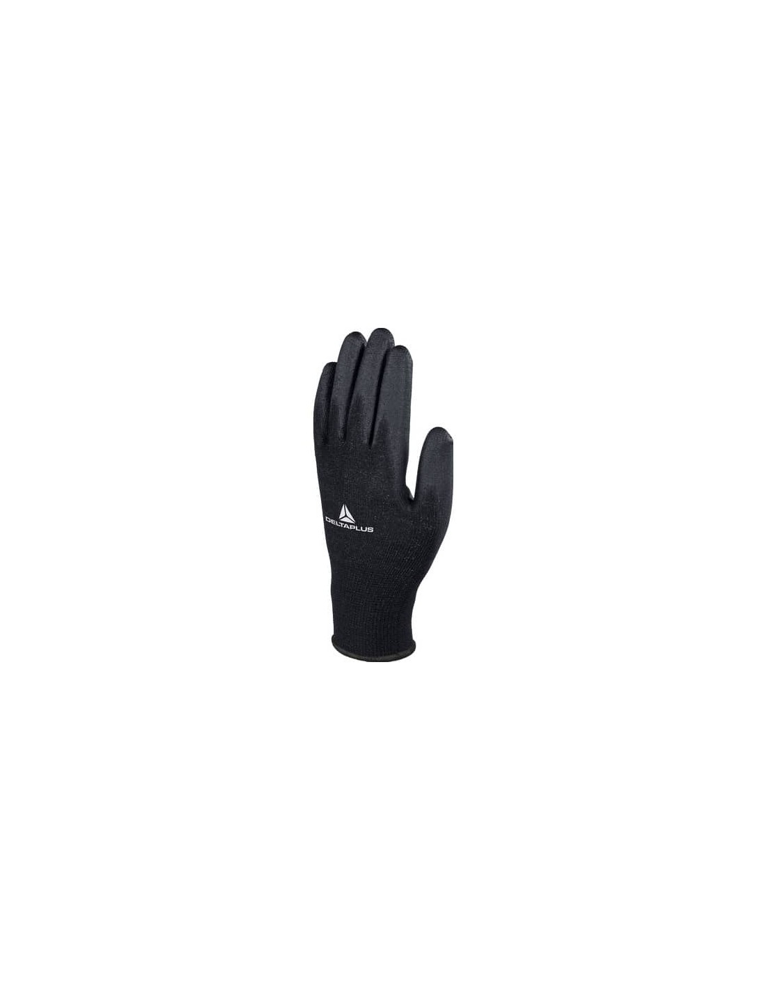 Guanto da lavoro Delta Plus in maglia di poliestere con palmo in poliuretano nero taglia 9 conf. da 12 pezzi - VE702PN09