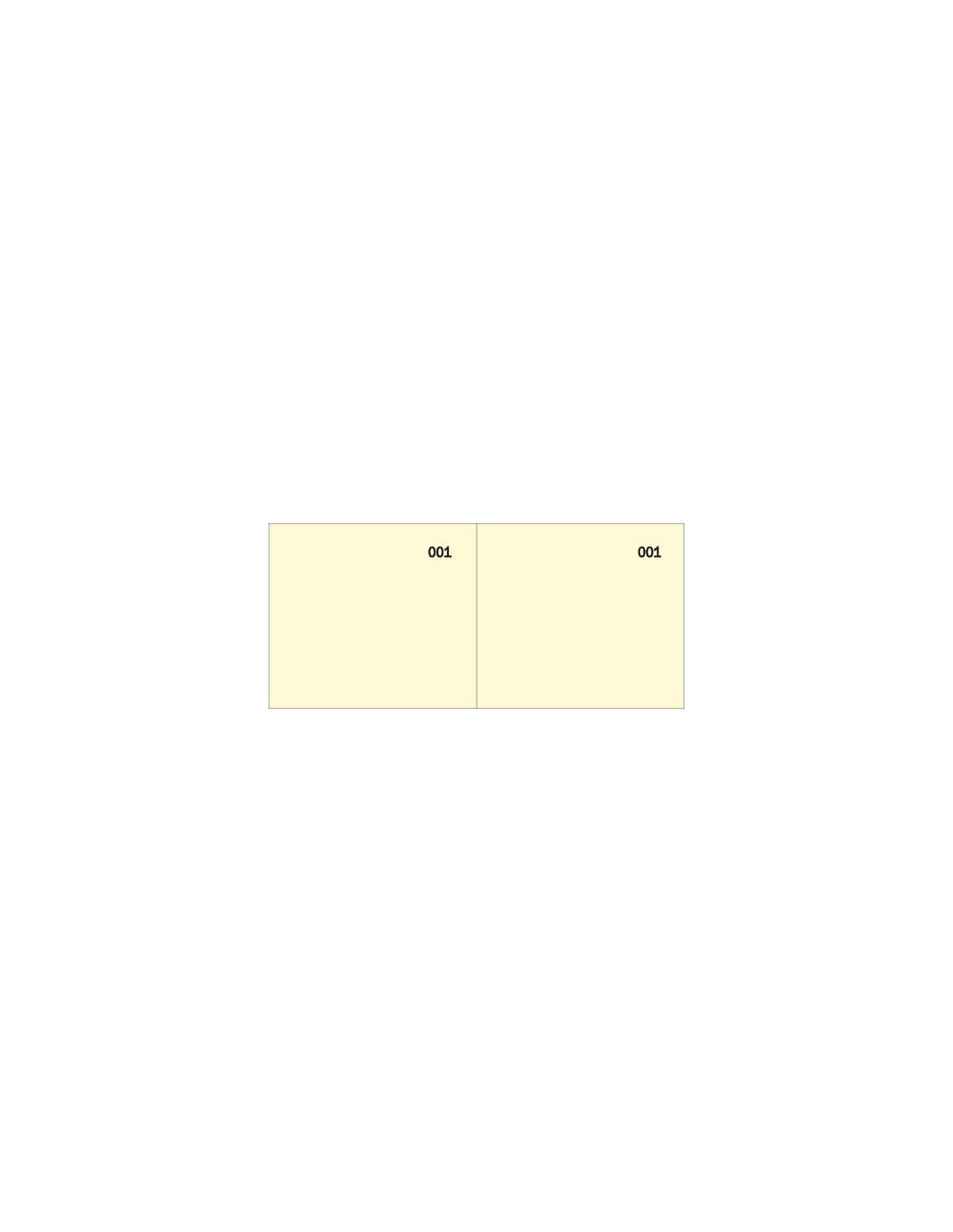 Scontrino a 2 sezioni giallo, blocco di 100 copie, 2 scontrini per foglio, prenumerati. Formato 5,8x13 cm.