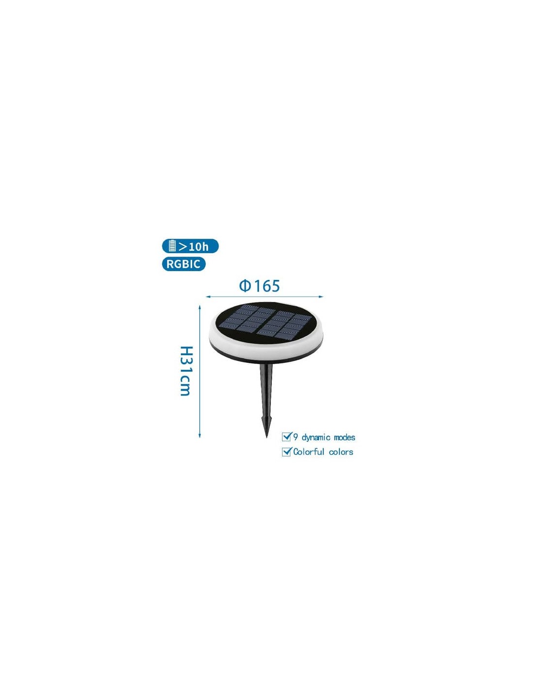 Molto popolari in America ed Europa, i faretti segnapassi creano colore ed atmosfera. Sono un prodotto ecologico dai molteplici punti di forza ed un elemento decorativo che non può mai mancare. Perfetti per l'illuminazione di zone di passaggio e come luce di cortesia. Le luci si ricaricano attraverso un pannello solare: energia pulita, tecnologia avanzata ed alta qualità che ti permettono di risparmiare. Applique dotata di un sensore crepuscolare e durante il giorno entra in modalità ricarica, mentre al buio fa accendere automaticamente le luci. Nessuna installazione richiesta, basta fissare il faretto a terra e sei pronto a incominciare! Le luci LED garantiscono un risparmio energetico ed un'alta durabilità. Potenza 0,6W. Grado di protezione IP65. Luce RGB. Dimensioni Φ165 x H. 31 mm Colore del prodotto bianco, nero. Colore chiaro RGBIC. Vita utile 25000h. Tipologia pannello solare policristallino. Ambiente esterno. Certificazione CE e RoHS.