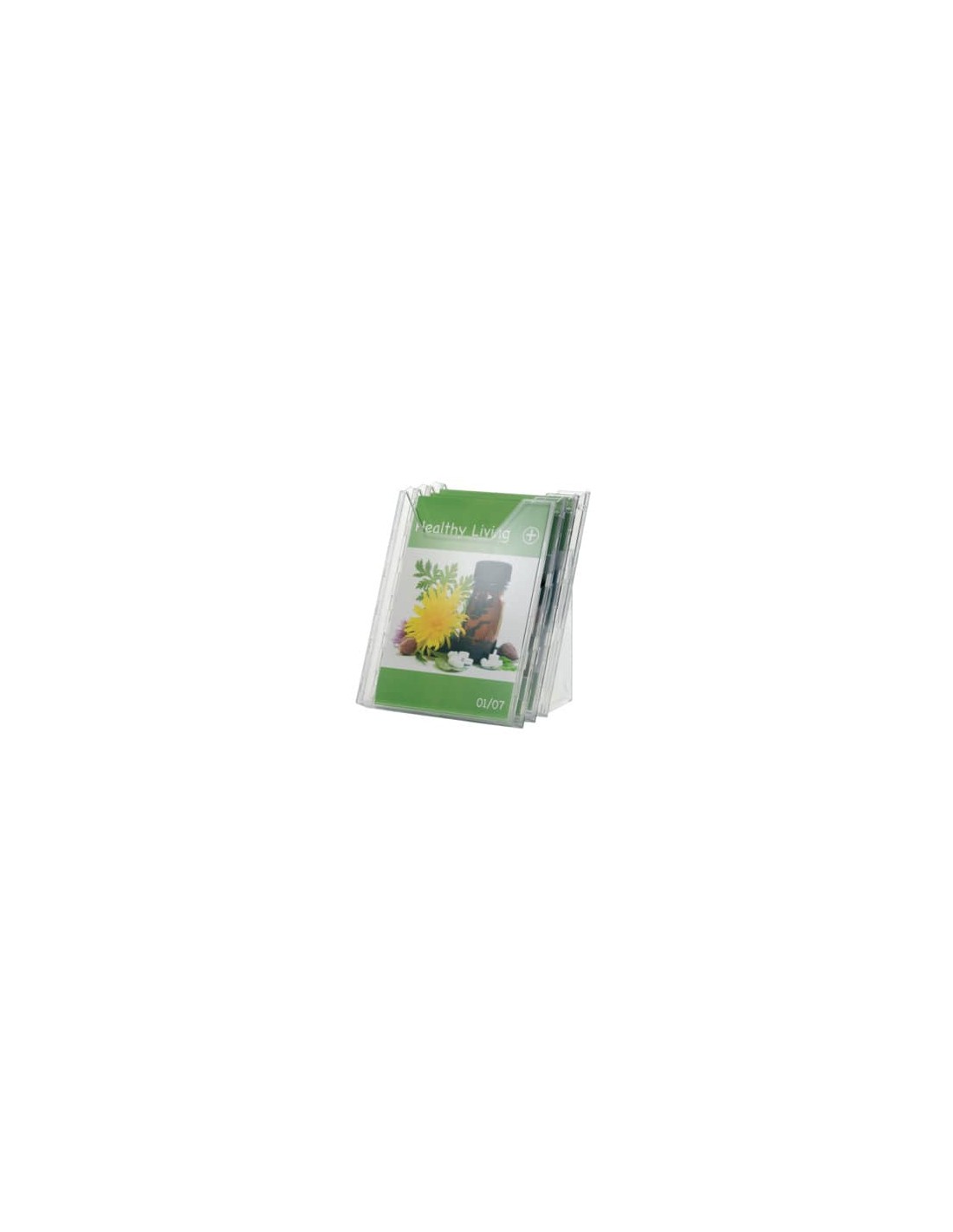 Espositore dotato di 3 vaschette per materiale espositivo formato A4, dal design semplice ed elegante.