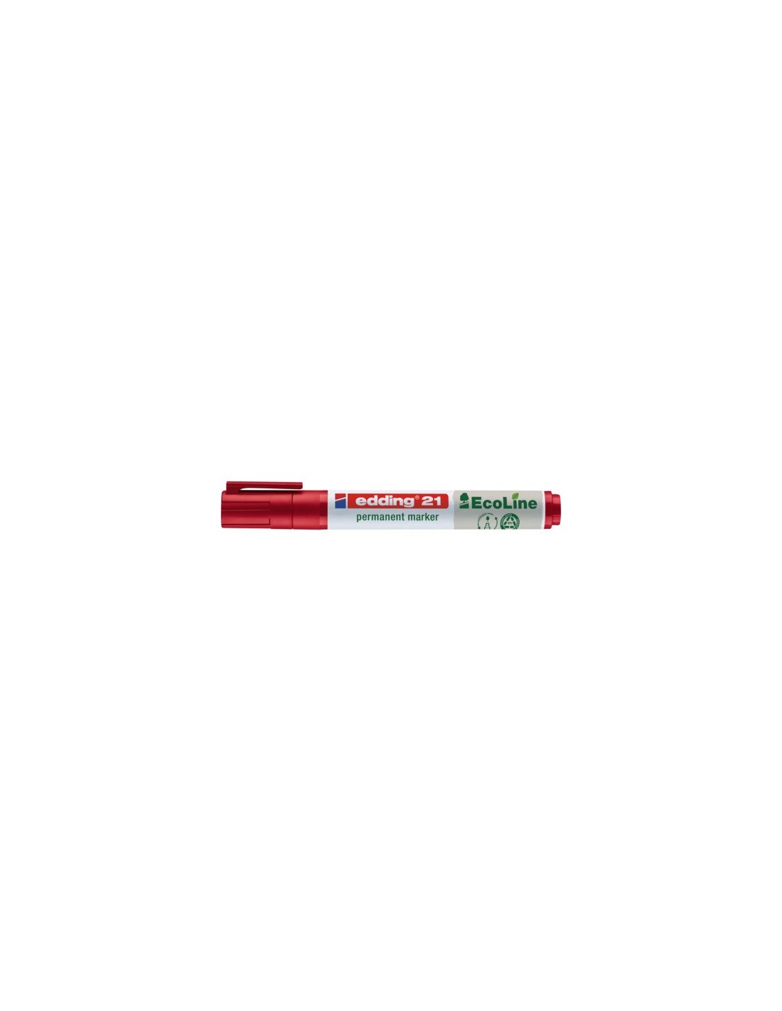 Marcatore permanente EcoLine a punta tonda. Realizzato con inchiostro permanente ad asciugatura rapida resistente all'acqua e alla luce. Inchiostro L'inchiostro è inoltre inodore e senza aggiunta di toluene e xilene. Prodotto con il 90% di materiale plastico riciclato. Punta con tratto da 1,5-3 mm. Colore rosso. Rigenerabile con inchiostri per ricarica edding (e-MTK25 inchiostro per ricarica capillare, e-T25, e-T100, e-T1000 inchiostri per ricarica a goccia) e punte di ricambio (4-21N).