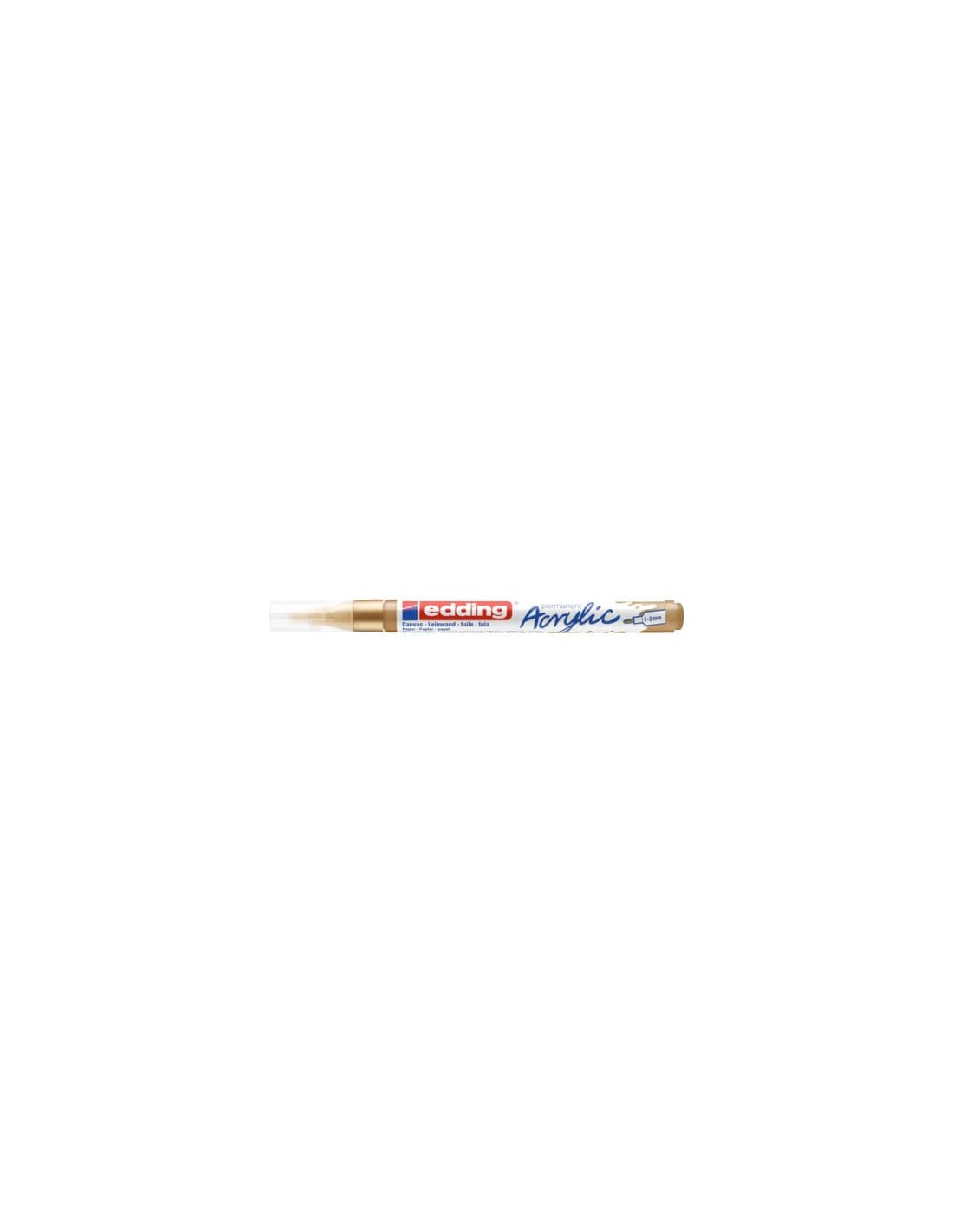 Marcatore acrilico tratto fine per dipingere in modo facile e spontaneo su superfici chiare o scure. Il pennino rotondo robusto e sottile è adatto per disegnare senza sforzo contorni o dettagli. Ideale per materiali come tele, carta acrilica o cartone. Vernice di alta qualità, impermeabile, pigmentate, a base d'acqua, inodore. Resistente alla luce e permanente dopo l’essiccazione per un'applicazione pulita. Risultato semilucido. Punta tonda 1-2 mm. Colore oro prezioso.