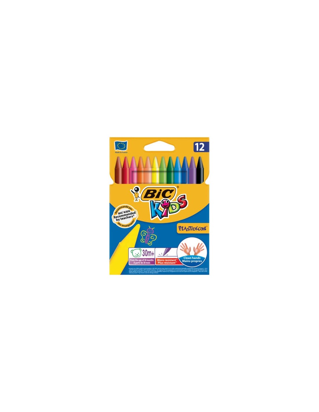 Pastelli in plastica particolarmente adatti ai bambini più piccoli perché ultra-resistenti ed extra-puliti sulle mani e sui tessuti. La forma triangolare consente una facile impugnatura. Confezione da 12 colori assortiti.