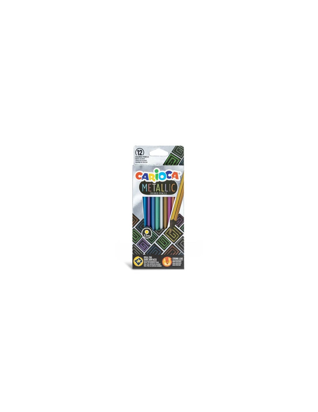 Le matite colorate Metallic presentano un design esagonale che assicura una presa comoda e stabile durante l’uso. Dotate di una mina premium, resistente alle cadute, offrono un’elevata qualità di scrittura e disegno, mantenendo la punta intatta anche in caso di urti. I colori, caratterizzati da una finitura coprente e metallizzata, sono perfetti per creare effetti brillanti su superfici scure, dando vita a disegni originali e vibranti. Facili da temperare, queste matite sono l’ideale per chi cerca versatilità e stile nelle proprie opere artistiche.