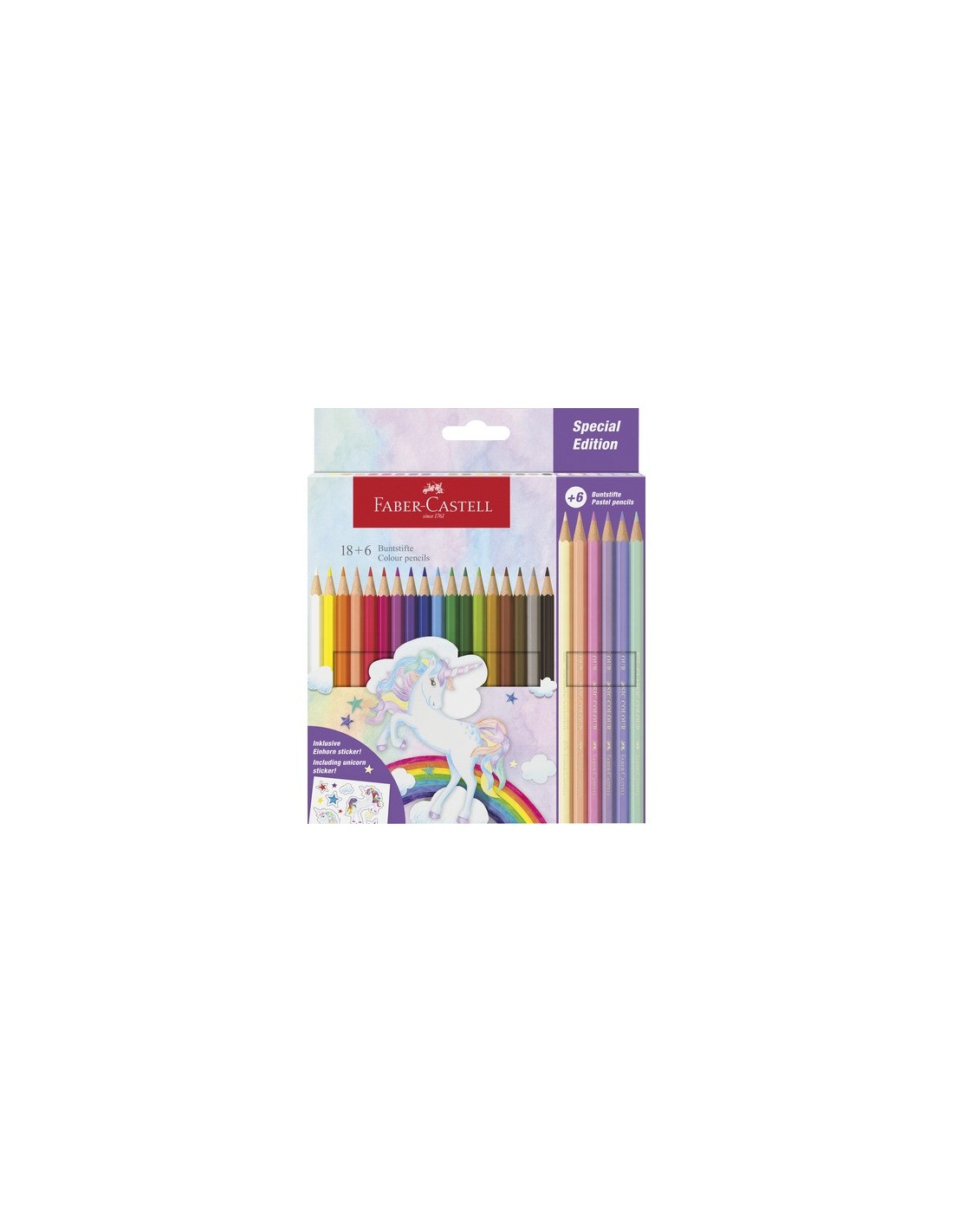 Matite colorate Faber-Castell fusto esagonale in conf. da 18 Classic unicorno + 6 Pastel - 111221