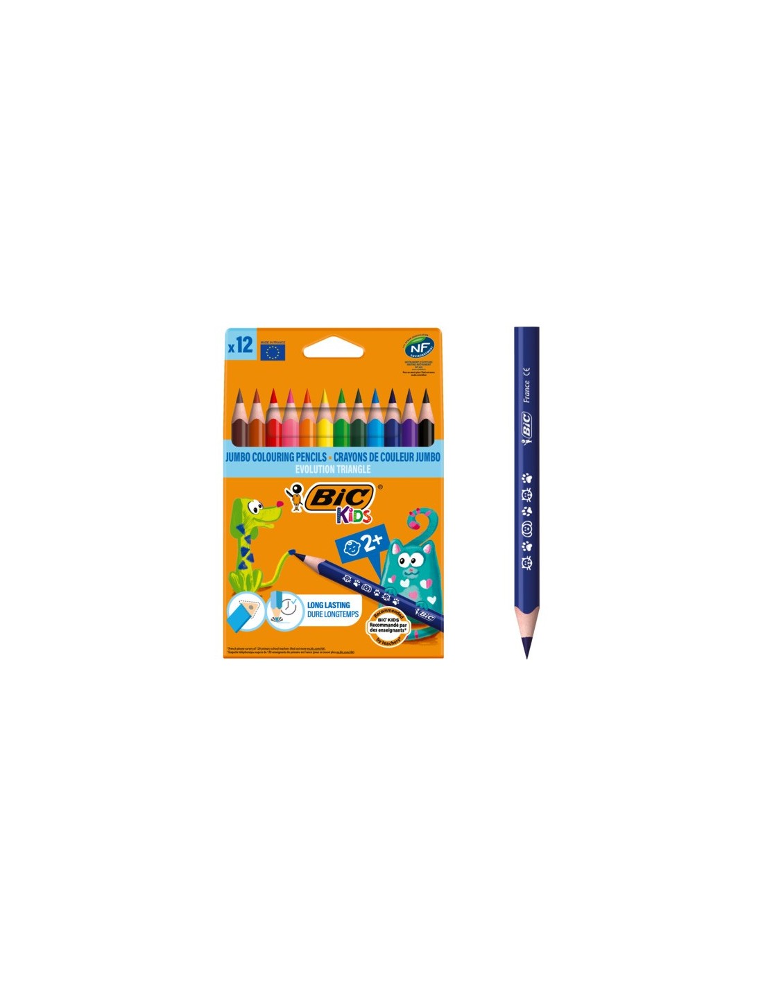 Matite colorate BIC Kids Evolution Triangle realizzate in resina senza legno riciclata al 55%. Il fusto triangolare garantisce una comoda impugnatura. La mina è ultra resistente con diametro 4,3 mm. Ideale per i bambini dai 2 anni in su. Ha un tratto altamente coprente. Prodotto con certificazione ecologica NF Environment. Confezione composta da 12 colori assortiti.