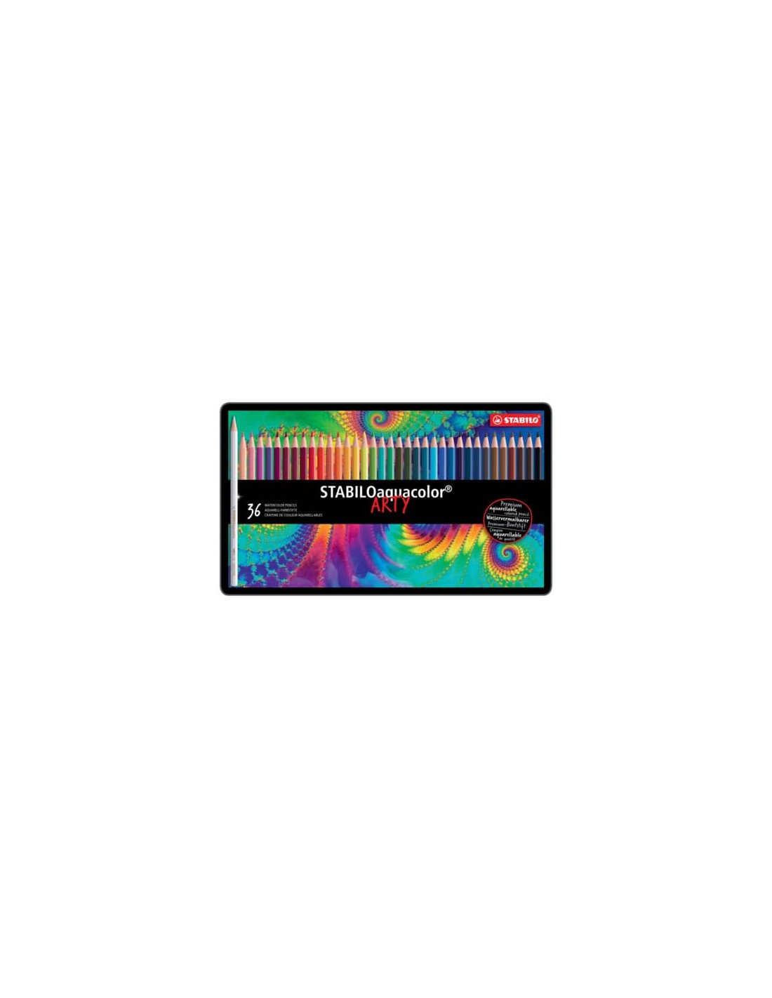 Matite colorate acquerellabili di alta qualità e dal colore molto ricco adatte anche all’uso didattico. Tratto scorrevole. Disponibile in scatola di metallo in confezione da 36 colori assortiti. Conforme alle direttive CE.
