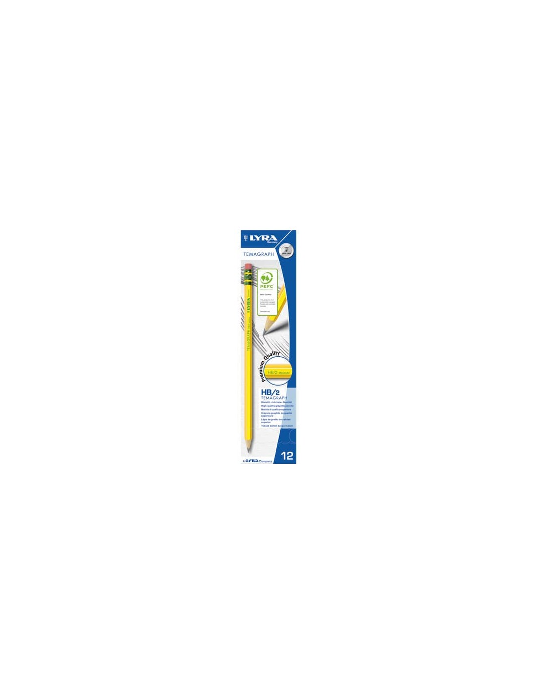 Matita Lyra Temagraph HB Medium con gommino. Matita di grafite di alta qualità. Lunghezza 18 cm senza gomma. Mina di grafite finissima extra resistente. Tratti sottili e precisi, facili da rimuovere con una normale gomma per grafite. Corpo a sezione esagonale maggiorata, 7 mm, per agevolare l’impugnatura e non affaticare la mano. Con bottone colorato che identifica la gradazione. Gradazione: HB Medium.