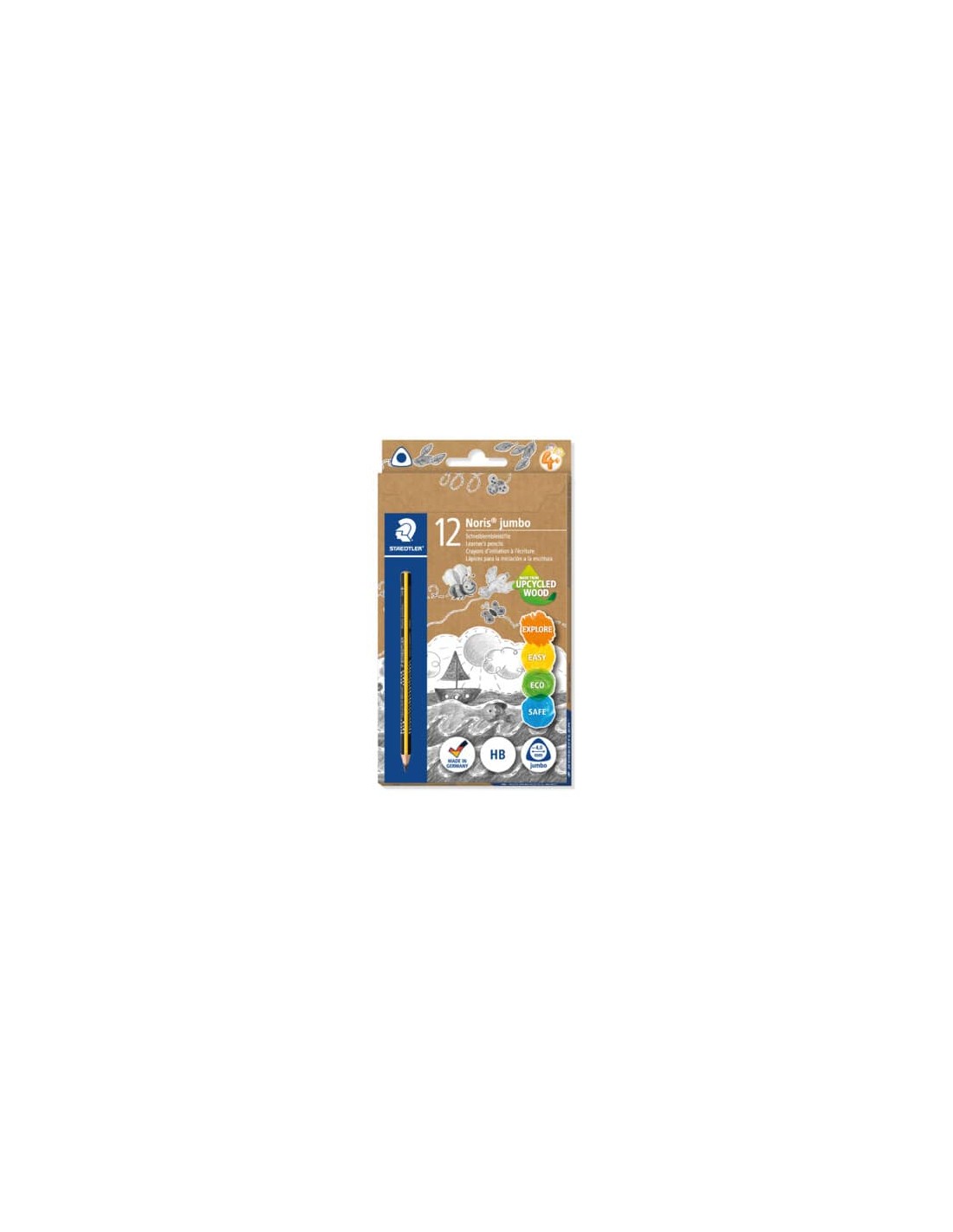 Matita Staedtler Noris® Jumbo triangolare mina diam. 4 mm, gradazione ''HB''. Matita di alta qualità ergonomica dalla forma triangolare per scrivere e disegnare in modo comodo e rilassante. Ideale per i primi esercizi di scrittura e disegno. Resistente alla rottura grazie ad una speciale formulazione della mina e ad una solida incollatura al legno. Legno proveniente da foreste certificate a gestione sostenibile.