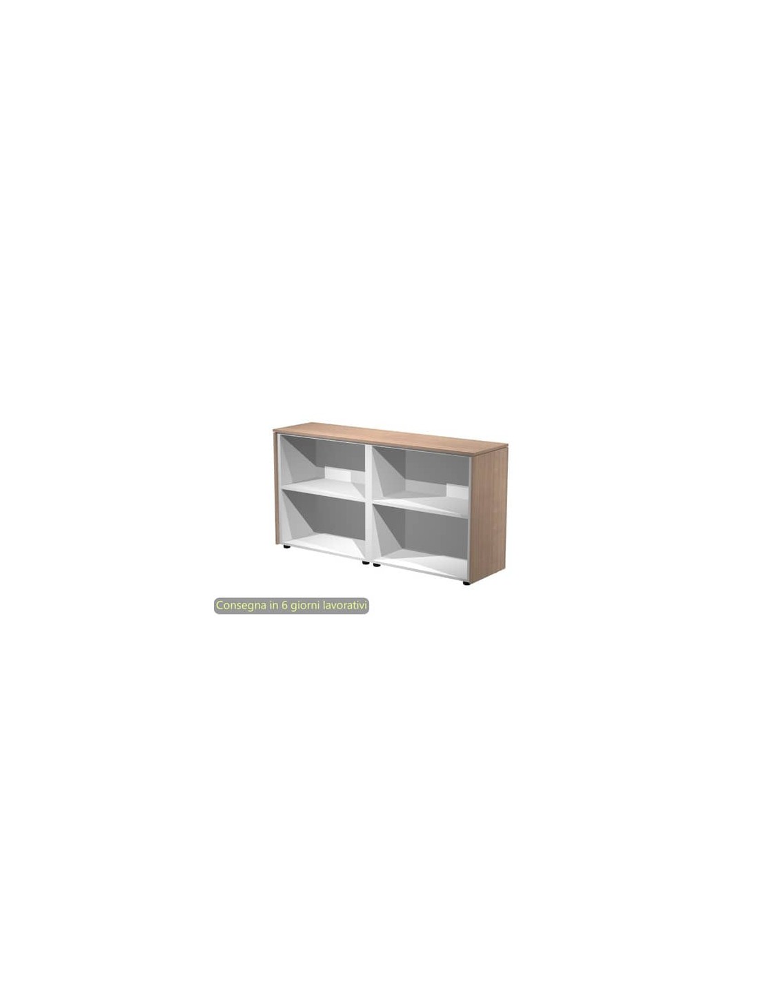 Il prodotto è allestito a giorno oppure è completabile con ante dotate di serratura (opzionali, di 18 mm di spessore), ed è realizzato in materiale bilaminato nobilitato melaminico. Top e fianchi di spessore 14 mm, antigraffio ed antiriflesso. Ripiani di spessore 25 mm regolabili in altezza con sistema di bloccaggio nella posizione desiderata. Rifiniti posteriormente in melaminico spessore 10 mm di colore grigio alluminio. Piedini livellabili dall’interno.
