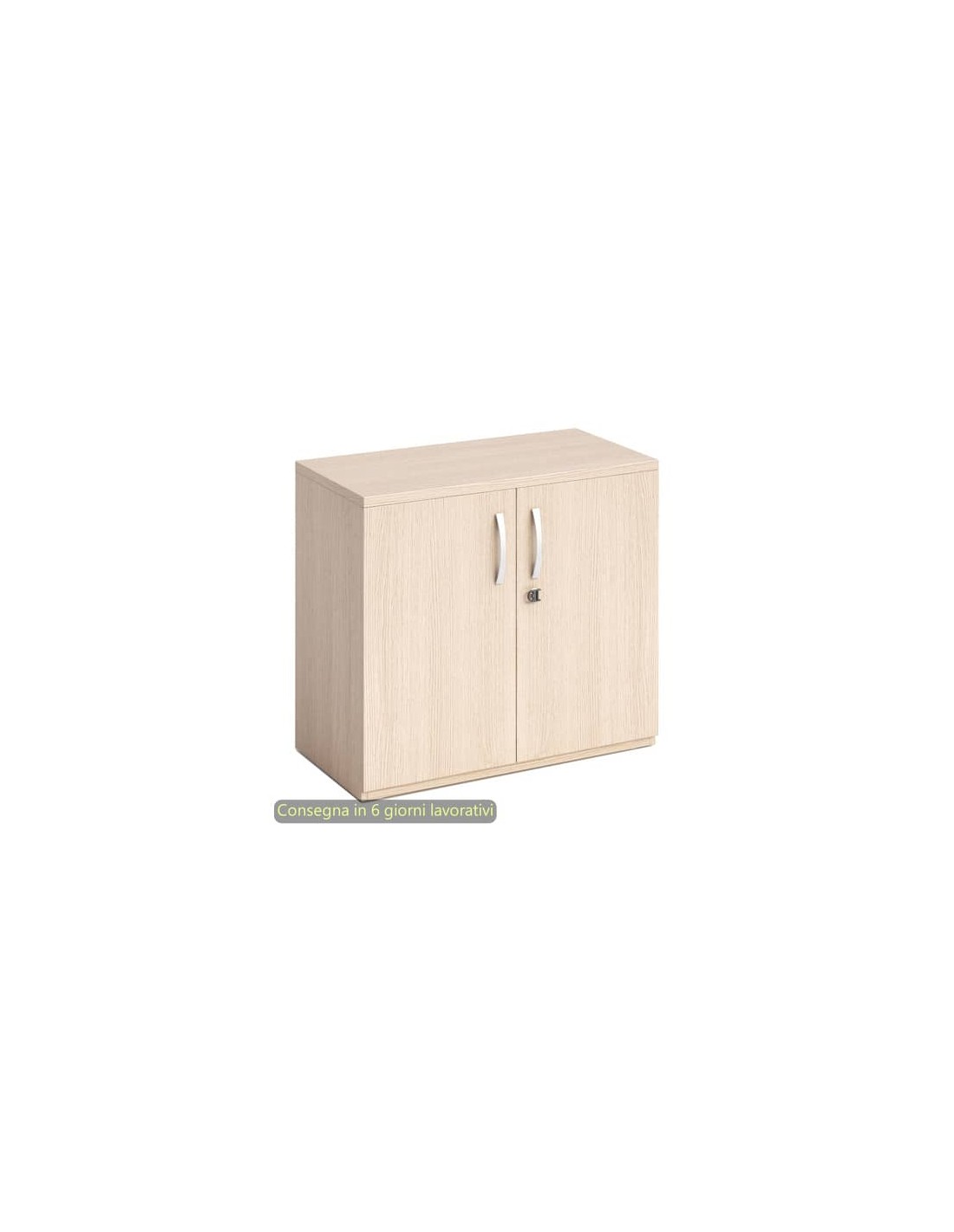 Il prodotto è dotato di ante, in melaminico spessore 18 mm con serratura a torcetto e maniglie in metallo, ed è realizzato in materiale bilaminato nobilitato melaminico. Top di spessore 25 mm, antigraffio ed antiriflesso. Fianchi e ripiani di spessore 16 mm, regolabili in altezza con sistema di bloccaggio nella posizione desiderata. Rifiniti posteriormente nello stesso colore della struttura possono essere utilizzati come pareti divisorie. Piedini regolabili in altezza per un perfetto livellamento sul pavimento.