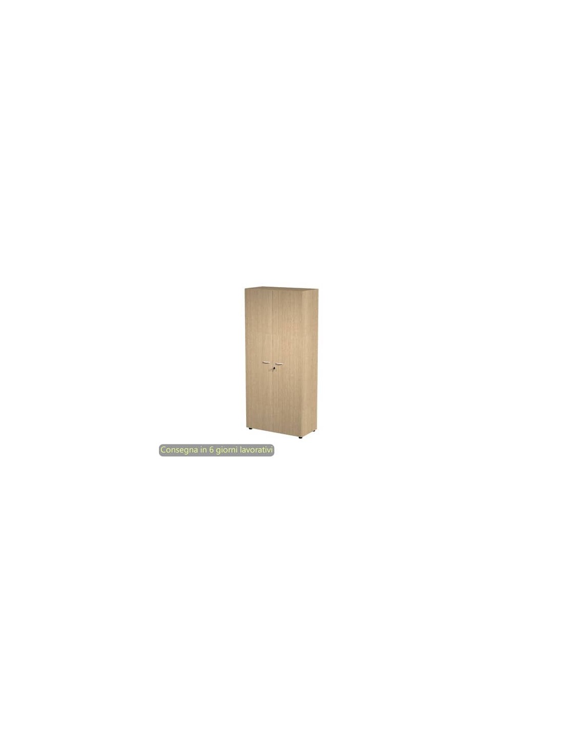 Realizzato in robusto melaminico bilaminato antigraffio ed antiriflesso, con ante alte battenti in melaminico spessore 18 mm, con serratura. Struttura di spessore 18 mm. Maniglie in ABS antiurto finitura alluminio. Dotato di 4 solidi ripiani ad alto spessore (25 mm), 3 riposizionabili ed 1 fisso (il secondo dal basso). Profondità utile dei ripiani 42,5 cm. Rifinito posteriormente, con spessore del dietro rigido di 10 mm, può essere utilizzato come parete divisoria. Dotato di piedini regolabili in altezza per un perfetto livellamento col pavimento.