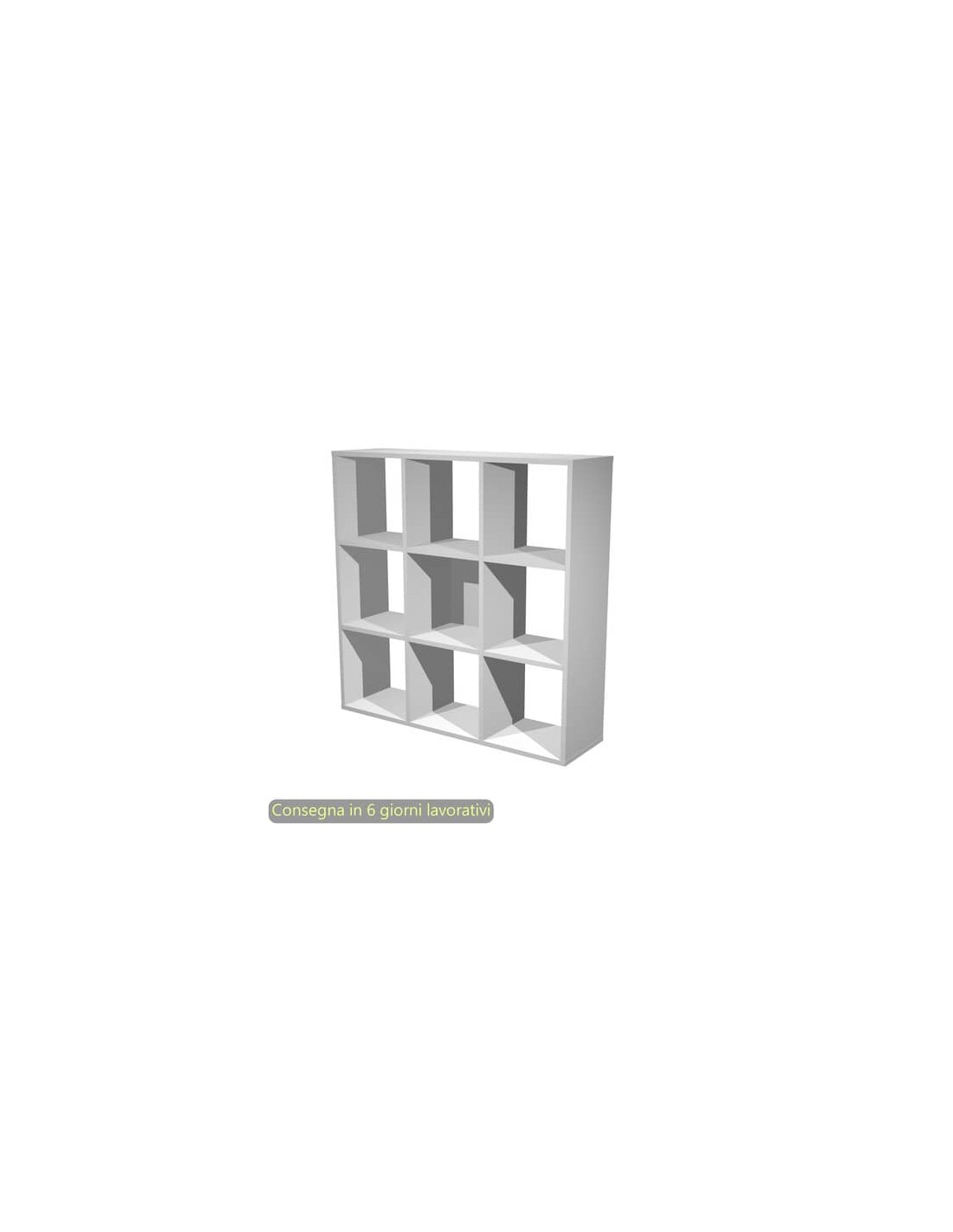 Realizzata in melaminico bilaminato antigraffio e antiriflesso di con piani di 16 mm di spessore. Ogni casella misura cm 32,5xH.32,5 cm. La profondità utile è di 29 cm.