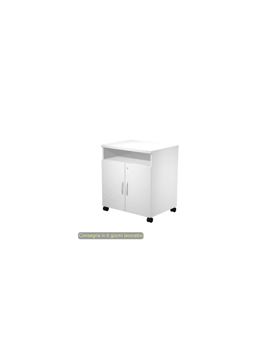 Il prodotto è dotato di ante, in melaminico spessore 18 mm con serratura a torcetto e maniglie in metallo, ed è realizzato in materiale bilaminato nobilitato melaminico. Top di spessore 25 mm, antigraffio ed antiriflesso. Fianchi e ripiani di spessore 16 mm, regolabili in altezza con sistema di bloccaggio nella posizione desiderata. Rifiniti posteriormente nello stesso colore della struttura possono essere utilizzati come pareti divisorie. Piedini regolabili in altezza per un perfetto livellamento sul pavimento. Due vani chiusi da una coppia di ante con serratura (ripiano interno profondità 45 cm).