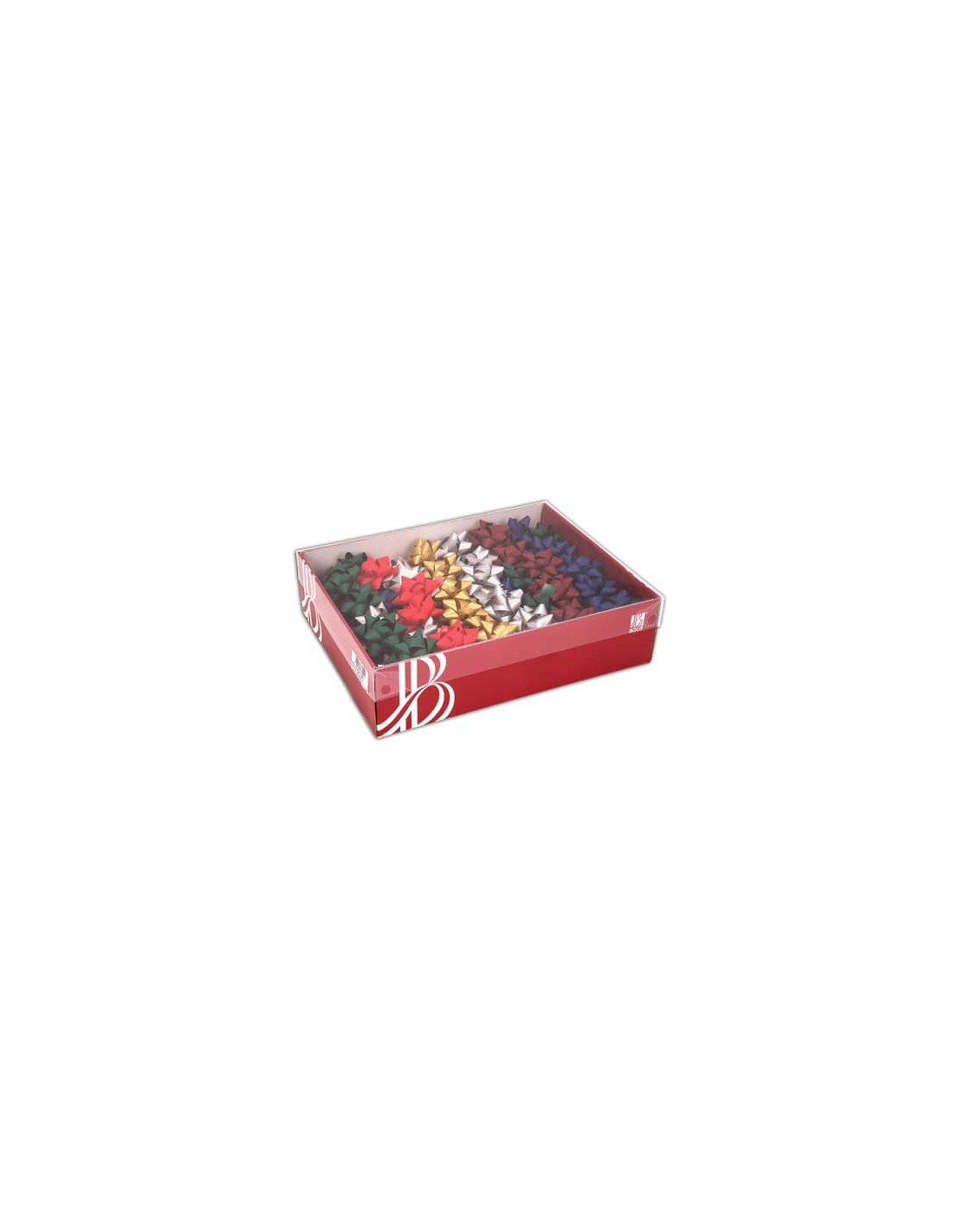 Coccarde di carta (paper synthetic) in colori assortiti. Assortimento Christmas (rosso, blu reale, bordeaux, verde pino, oro metallizzato, argento metallizzato). Confezione da 70 pezzi.