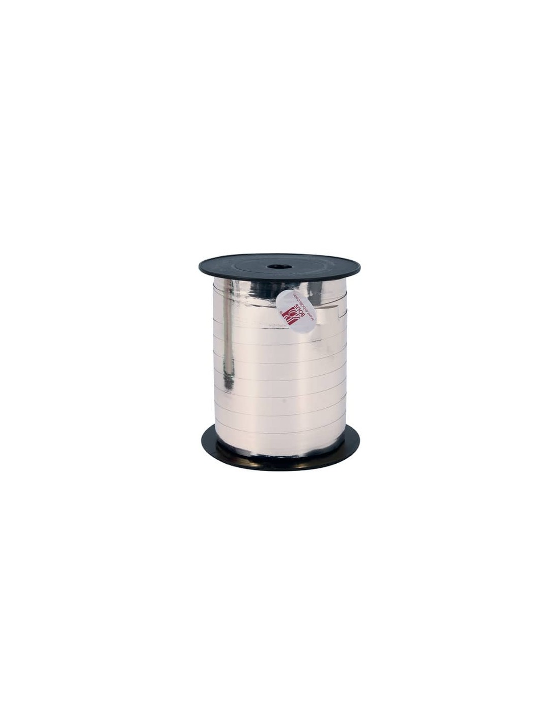 Rotolo di nastro in polipropilene. Formato 10 mm x 50 m. Colore argento lucido.