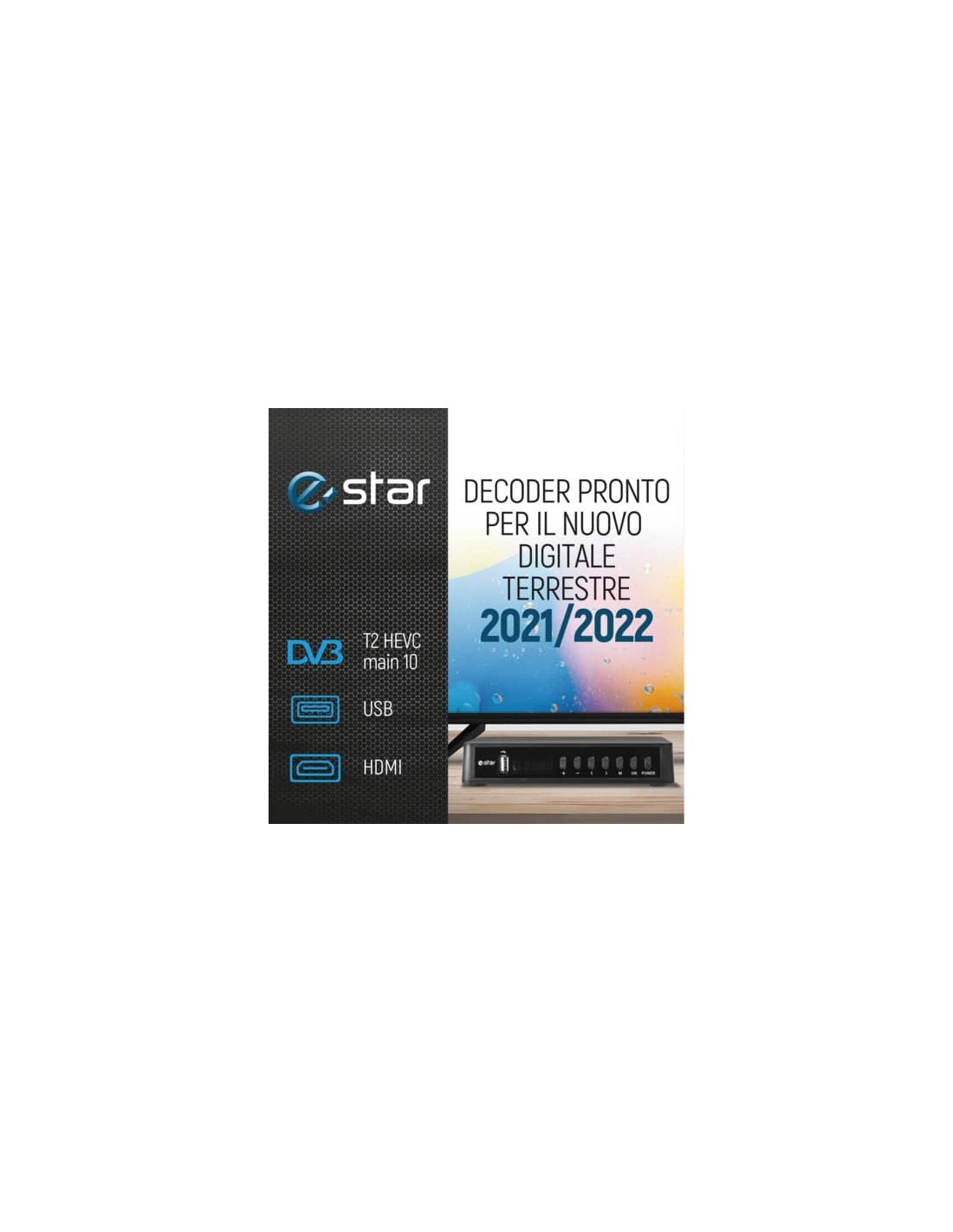 Il set-top box eSTAR STB T2 618 UHD con il suo design elegante è una scelta perfetta per qualsiasi famiglia, è elegante e piccolo. L'alloggiamento nero lo rende perfetto per la TV in qualsiasi stanza. Supporta la massima qualità video che la tua emittente può offrire. Puoi essere certo che qualsiasi canale che guardi avrà la migliore definizione possibile e l'immagine sui canali HD sarà particolarmente nitida e chiara. Ricevitore digitale terrestre Set Top Box Series con display LED e RJ45. Conforme agli standard DVB-T/T2 e MPEG-4, MPEG-2. Supporta l'impostazione della larghezza di banda del canale 7/8MHz. Commutazione automatica PAL e NTSC. Supporto multilingue. Scansione automatica, ricerca automatica dei canali alla prima installazione. 1000 canali. Colore nero.