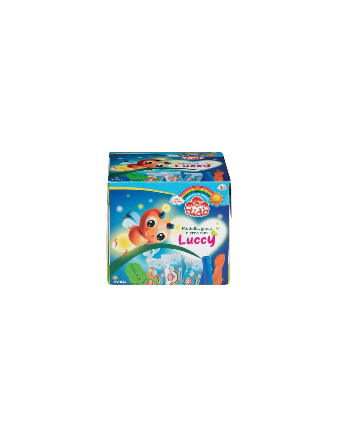 Didò ama la natura e tutti i suoi abitanti, soprattutto gli insetti! Ed ecco Luccy, la lucciola da salvare attraverso l’educazione al corretto utilizzo dell’energia elettrica, in particolare la luce. Spegni la luce! Accendi Luccy, all’interno ci sono i corpicini in cartoncino delle Lucciole e lo scenario che si illuminano al buio! Contiene: 3 salsicciotti Didò 50g, 1 coltellino, 1 mattarello, 1 paio di forbicine, 1 cartoncino con elementi che si illuminano al buio.