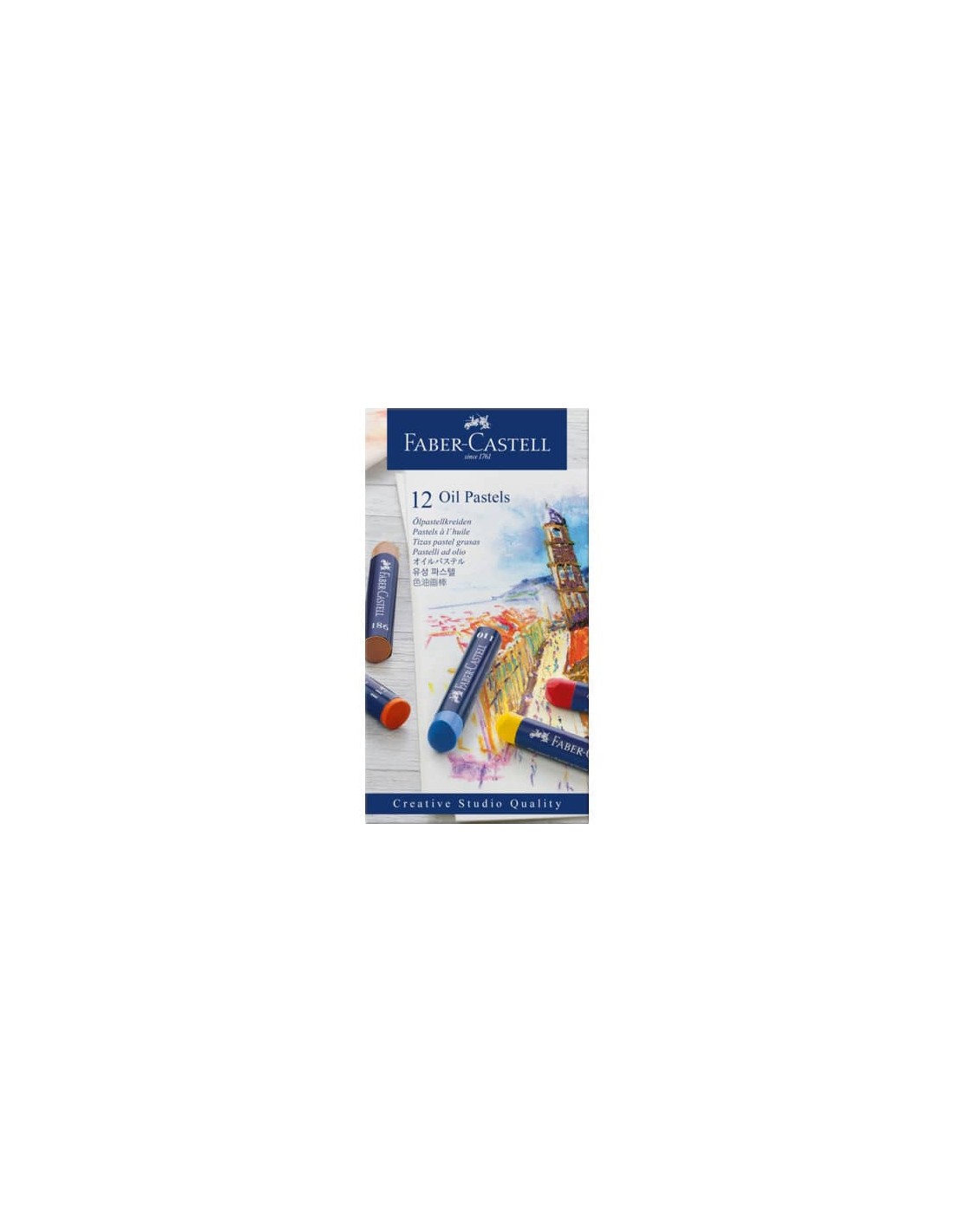 Pastelli ad olio Oil Pastels Creative Studio ricchi di pigmenti. Colori brillanti. Stesura coprente. Colori cremosi e morbidi da stendere. Privi di acidi. Ideali per le tecniche miste. Astuccio di cartone da 12 pezzi.