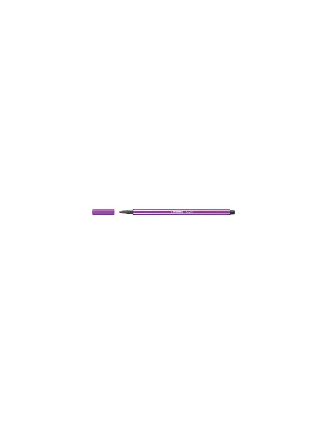Pennarelli con punta in fibra. Resistono fino a 24 ore senza il cappuccio. Inchiostro a base d’acqua, inodore. Parzialmente acquarellabile. Cappuccio ventilato anti soffocamento. Tratto 1 mm. Colore lilla.