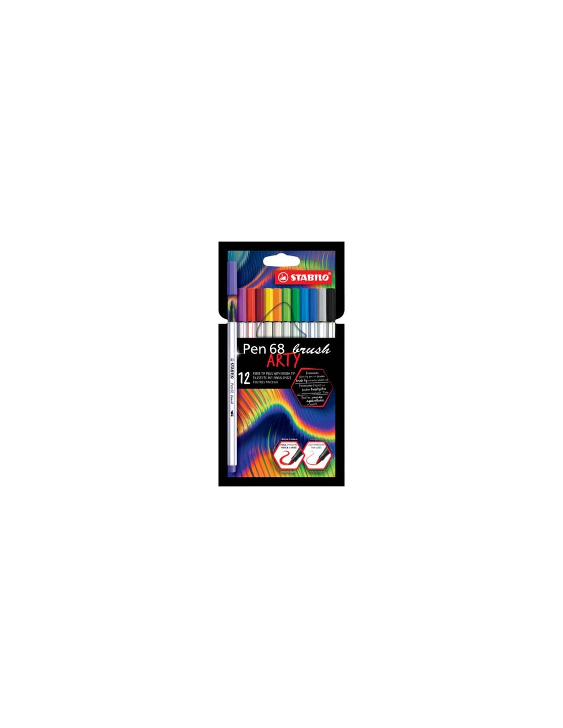 Con il pennarello Stabilo Pen 68 brush puoi controllare perfettamente i tuoi tratti, creando bellissime lettere in vero stile hand lettering. Potrai realizzare bellissime opere in modo semplice e veloce. Con la sua punta flessibile, questo pennarello si aggiunge alla famiglia Pen 68 ed è adatto sia ai principianti che agli artisti esperti. Variando la pressione sulla punta puoi usare il ''pennello'' per creare linee spesse o sottili sulla carta. Puoi creare altri effetti speciali con l'inchiostro a base d'acqua: bellissime sfumature di colore o fantastici acquarelli. Strumento ideale per decorazioni e lavori fai da te. Risultati garantiti e garanzia tedesca. Ideale per chi è alle prime armi con il brush lettering: grazie alla sua punta a pennello molto flessibile, hai subito la percezione della pressione che stai facendo. Usa la giusta pressione per disegnare line più spesse o più sottili – la punta è stata sviluppata proprio per i principianti! Per artisti più esperti, Pen 68 brush copre un ampio spettro creativo: dalle applicazioni artistiche all'ombreggiatura e all'acquarello. Combina le tue sfumature preferite e i risultati saranno unici. L'inchiostro a base d'acqua fornisce un ulteriore tocco creativo: usalo per creare fantastici effetti speciali come la fusione dei colori o gli effetti dell'acquerello Pen 68 brush dura 24 ore senza cappuccio e la punta non secca! Sviluppato da e insieme ai nostri fan - realizzato per soddisfare tutte le esigenze creative. Realizzato in Germania. Prodotto in conformità con il regolamento REACH (CE) n. 1907/2006. Prodotto in conformità con la direttiva sulla sicurezza dei giocattoli 2009/48/EC. Prodotto in conformità con la norma europea EN71 – 1, 2, 3 e 9. Marchio CE. Prodotto in conformità con la direttiva 94/62/EC sugli imballaggi e i rifiuti di imballaggio. Età consigliata: 8 anni in su. Linea Arty line, colori assortiti. Confezione composta da 12 colori assortiti.
